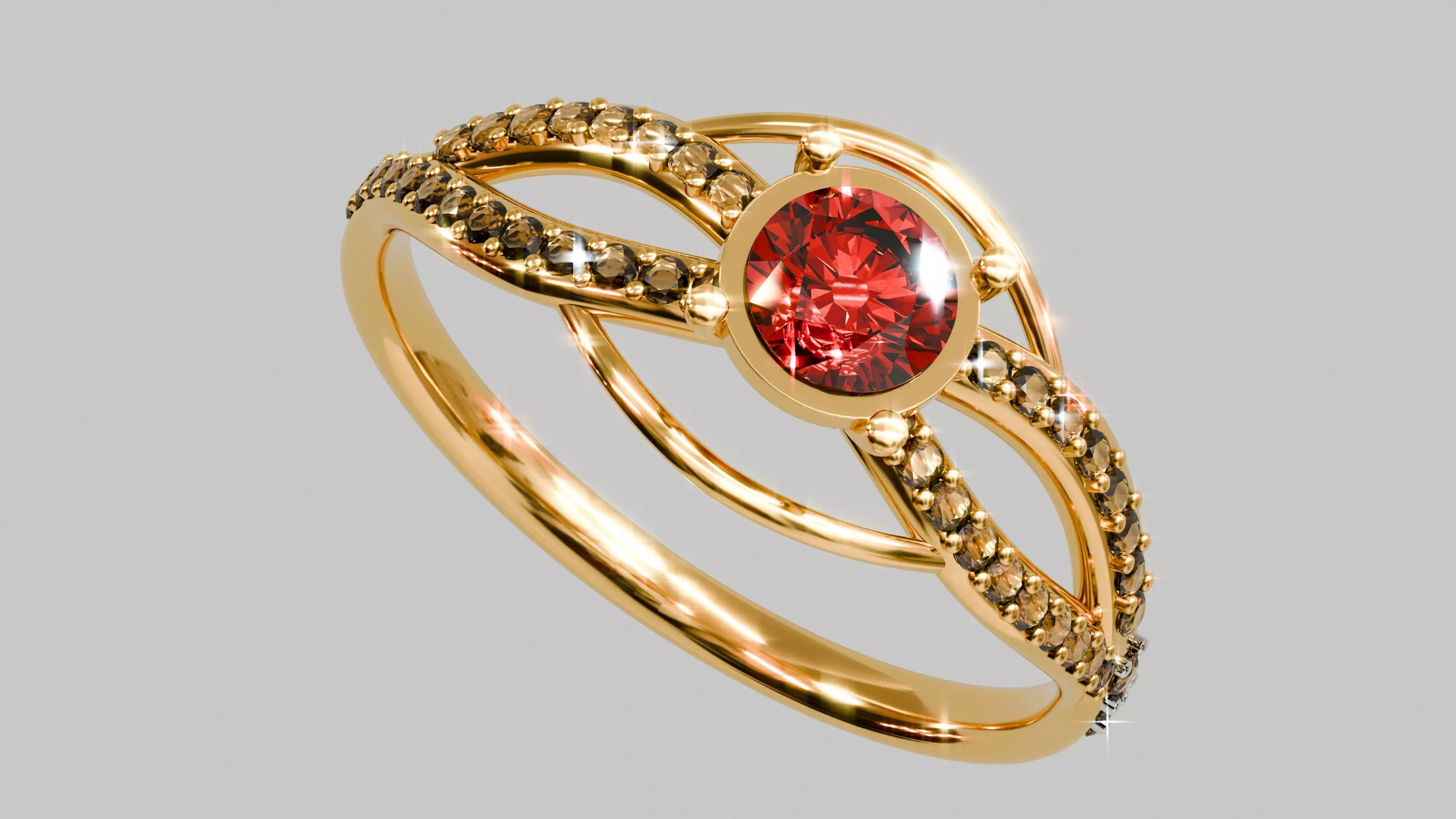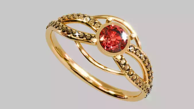 The design features an intertwined gold structure with pavé-set side stones and a central gemstone, offering an elegant and premium aesthetic suitable for high-end jewelry showcases.This model is intended for visualization purposes and is ideal for:Jewelry renders and marketing visualsProduct presentationsConcept development for jewelers and designers