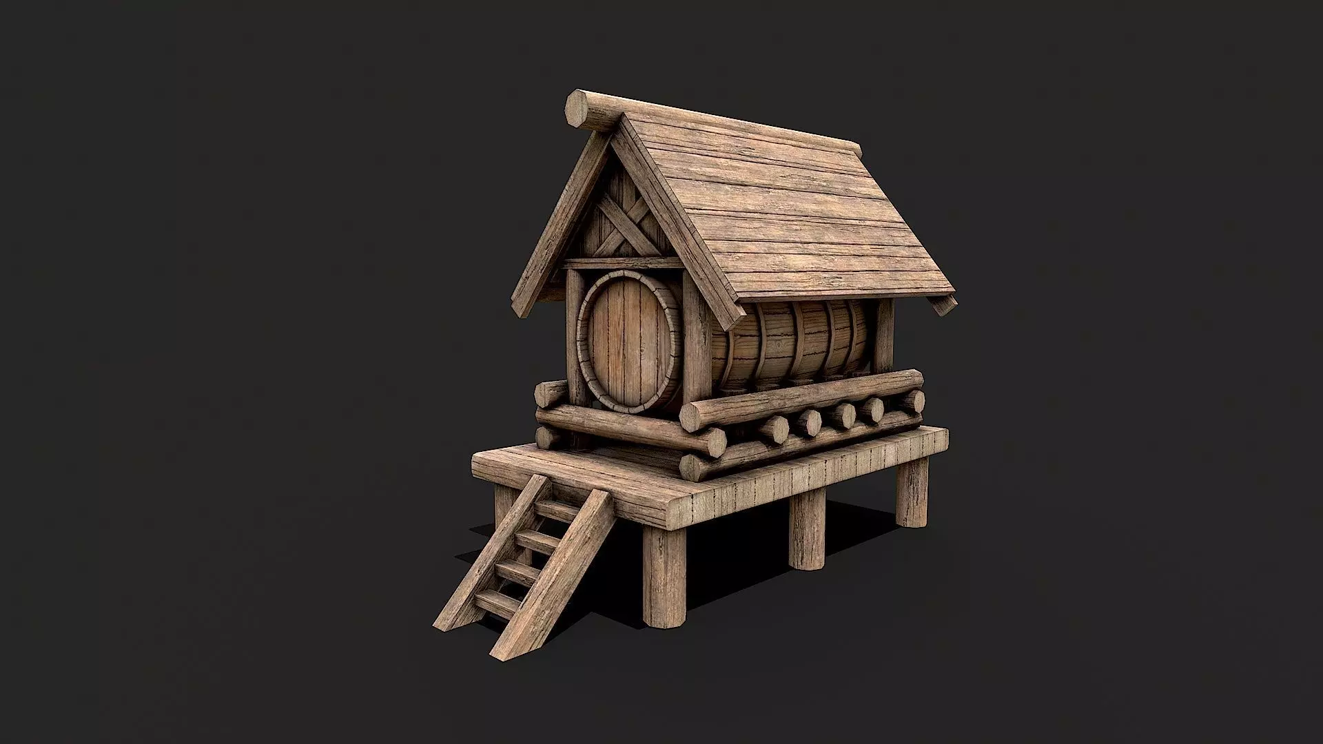 Medieval Wooden Water Tank PBR Low-poly 3D model