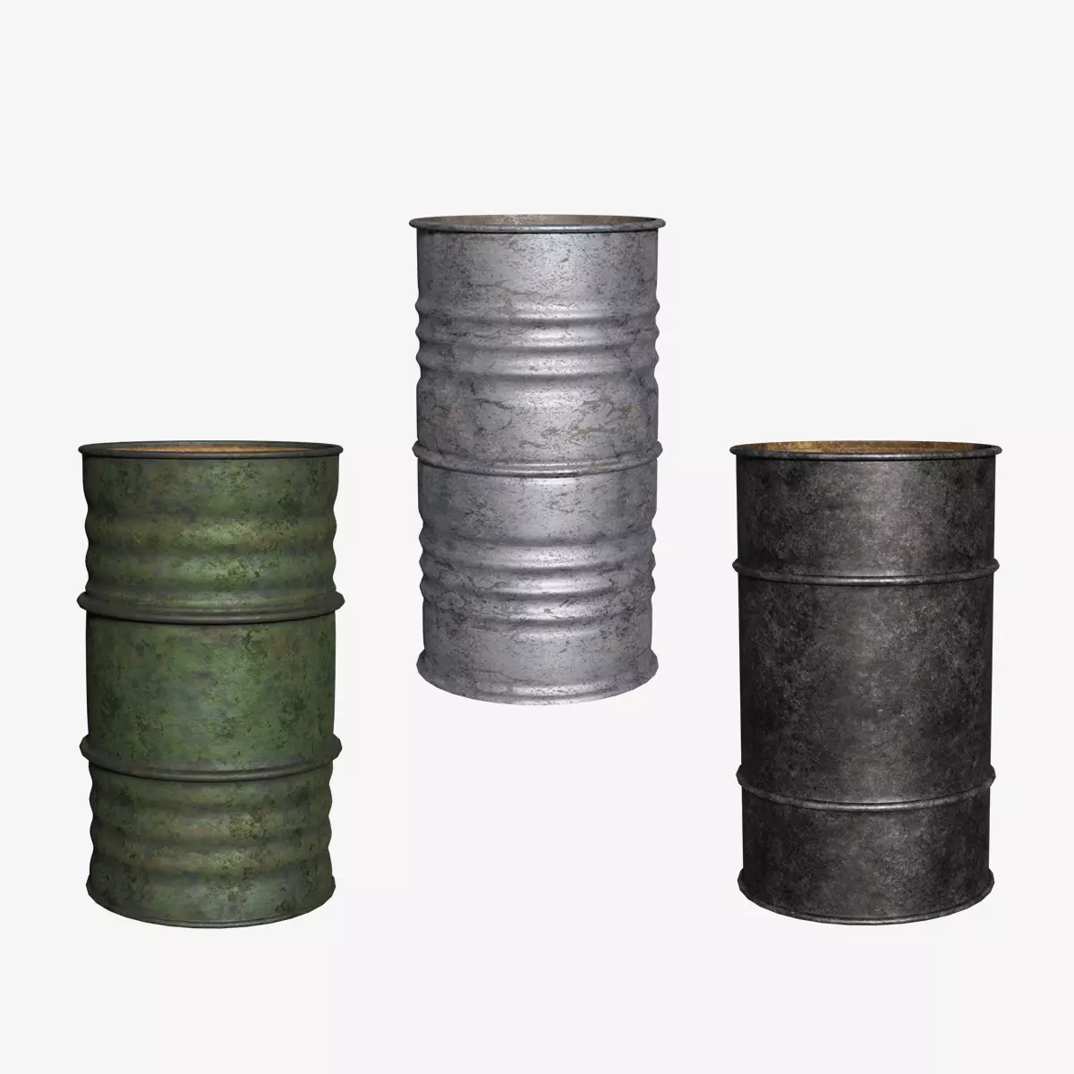 A set of semi-realistic 3D metal barrels assets, ideal for rendering, design, and games.