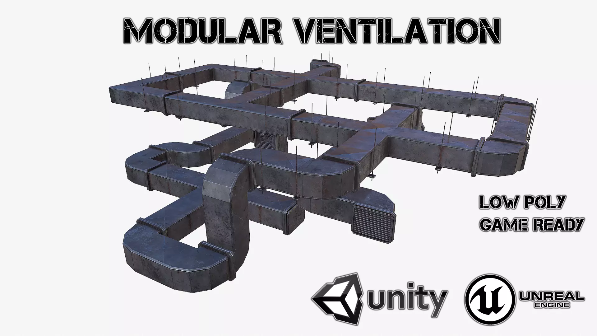 Included ZIP & RAR file formats: -mb -fbx -dae -obj -TGA Low poly: 14064 tris (25 models) TEXTURES: Ventilation_metal_old_dmg_AOVentilation_metal_old_dmg_DMVentilation_metal_old_dmg_HMVentilation_metal_old_dmg_MMVentilation_metal_old_dmg_NMVentilation_metal_old_dmg_RM All models have only one set of textures (4096x4096).Your game will be beautiful and optimized at the same time! 25 models will be available to you. You can create the configuration that is right for you! Fans can be animated. The scene was modeled using Autodesk Maya 2018. All objects are grouped and named correct for easy selection and control. You don't need a special plugin to open the scene. The entire scene was simulated in real scale. This model is scaled for the real world. Measurement units: centimeters. All materials are named correctly. The model includes a ready-to-play texture. It is very easy to work with him.