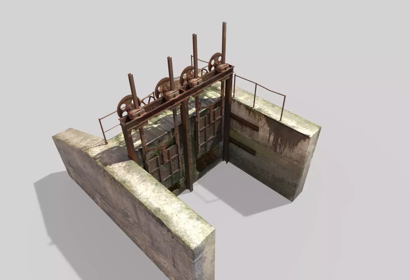 Model of old water - sluice gate. Model is very realistic.It has 5 PBR material.Maps are diffuse-specular-glossiness-height and normal. Model's textures has two sizes; 4096x4096-2048x2048. All maps are PNG formats and unwrapped, non-overlapping.