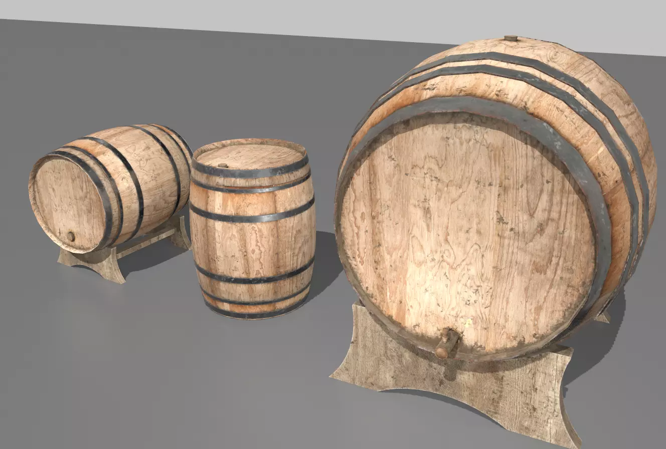 Old Wooden Barrels 2 Low-poly 3D model