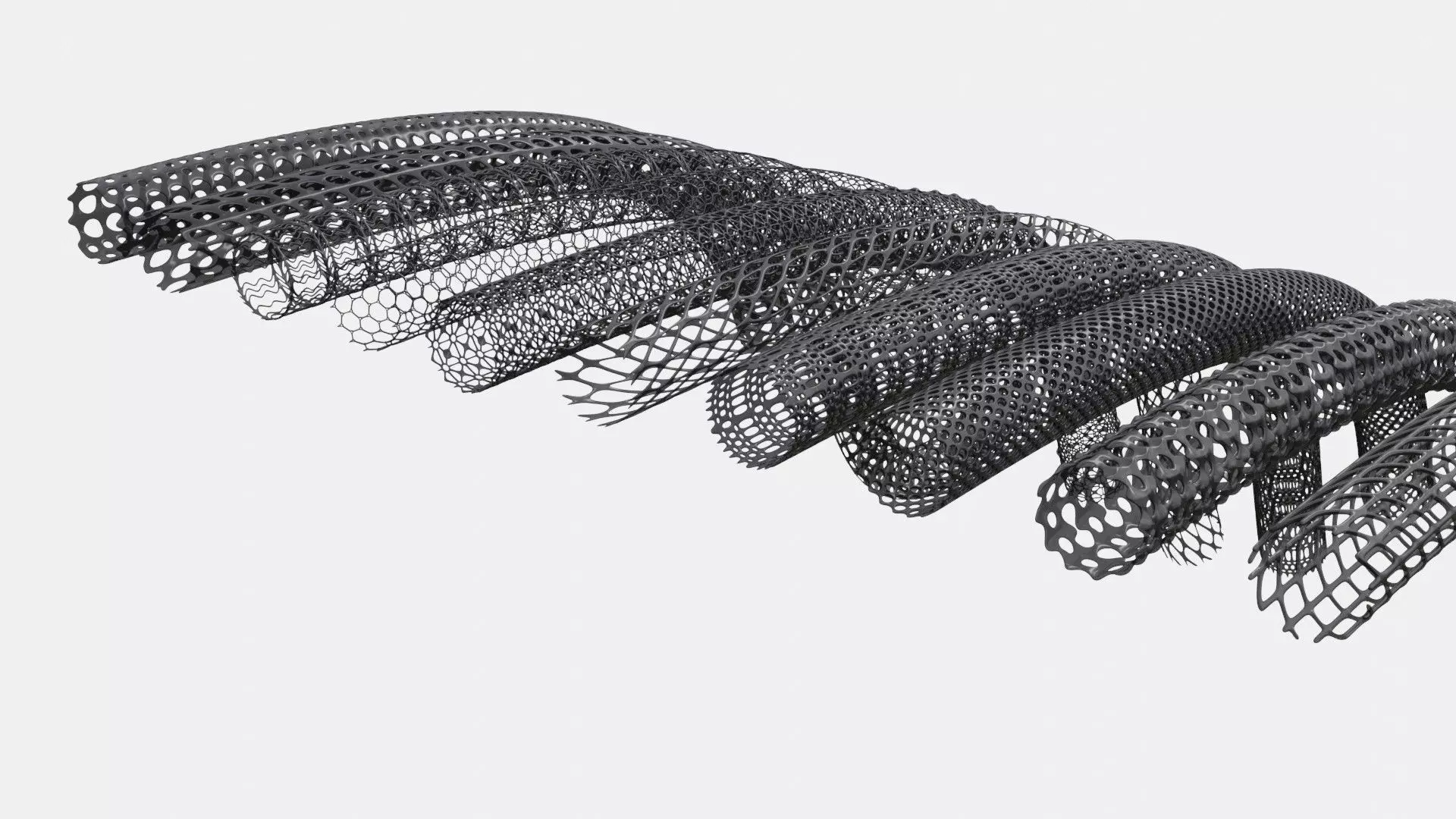 These are 10 variations of organic cable sleeving in sections that can be arrayed on cables, hoses, pipes or incorporated by themselves.