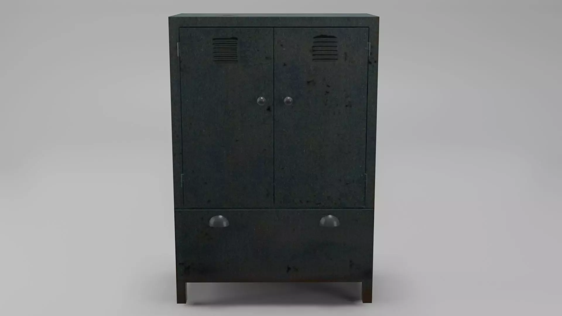 An old and tarnished tall metal cupboardcreated Blender Version 2.79Old Cupboard Low-polyUnit presets - metric.Geometry: Polygonal Quads