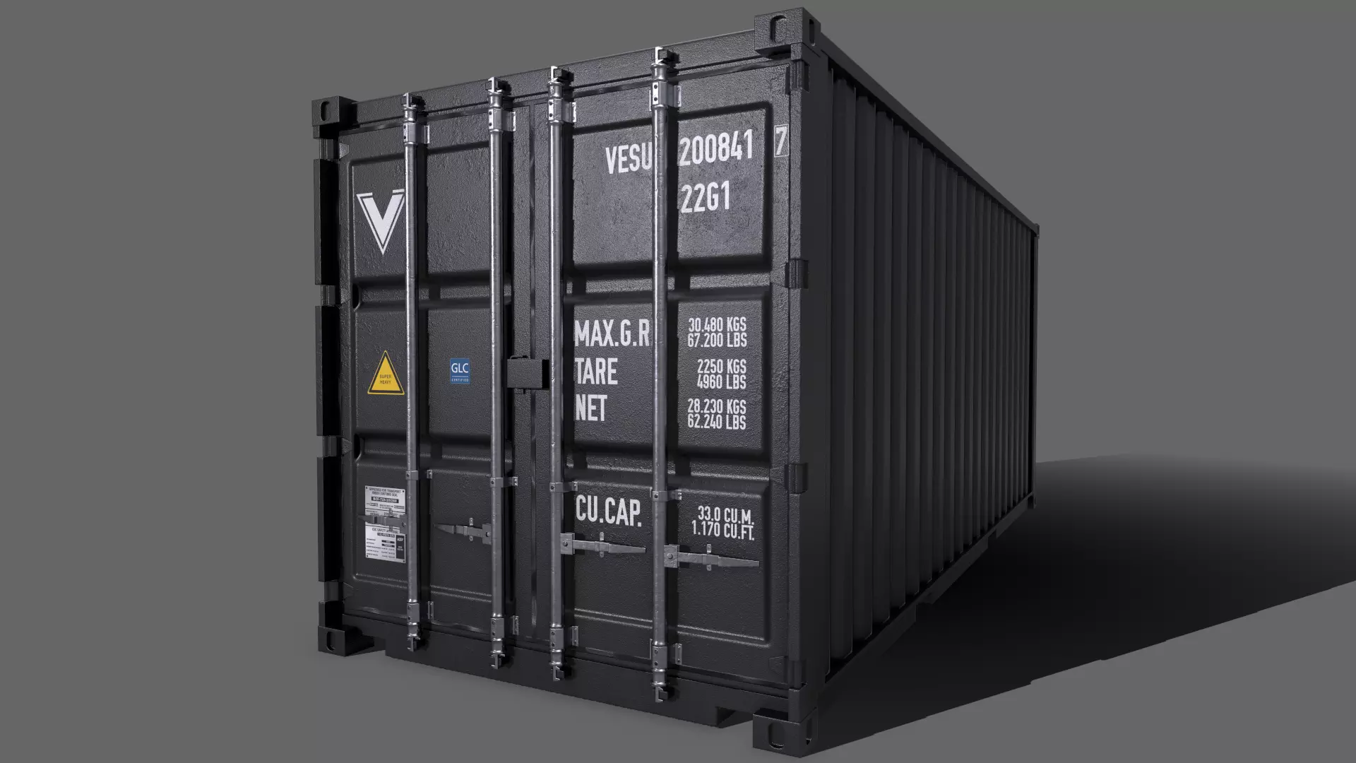 PBR 20 ft Shipping Cargo Container Version 2 - Black Low-poly 3D model
