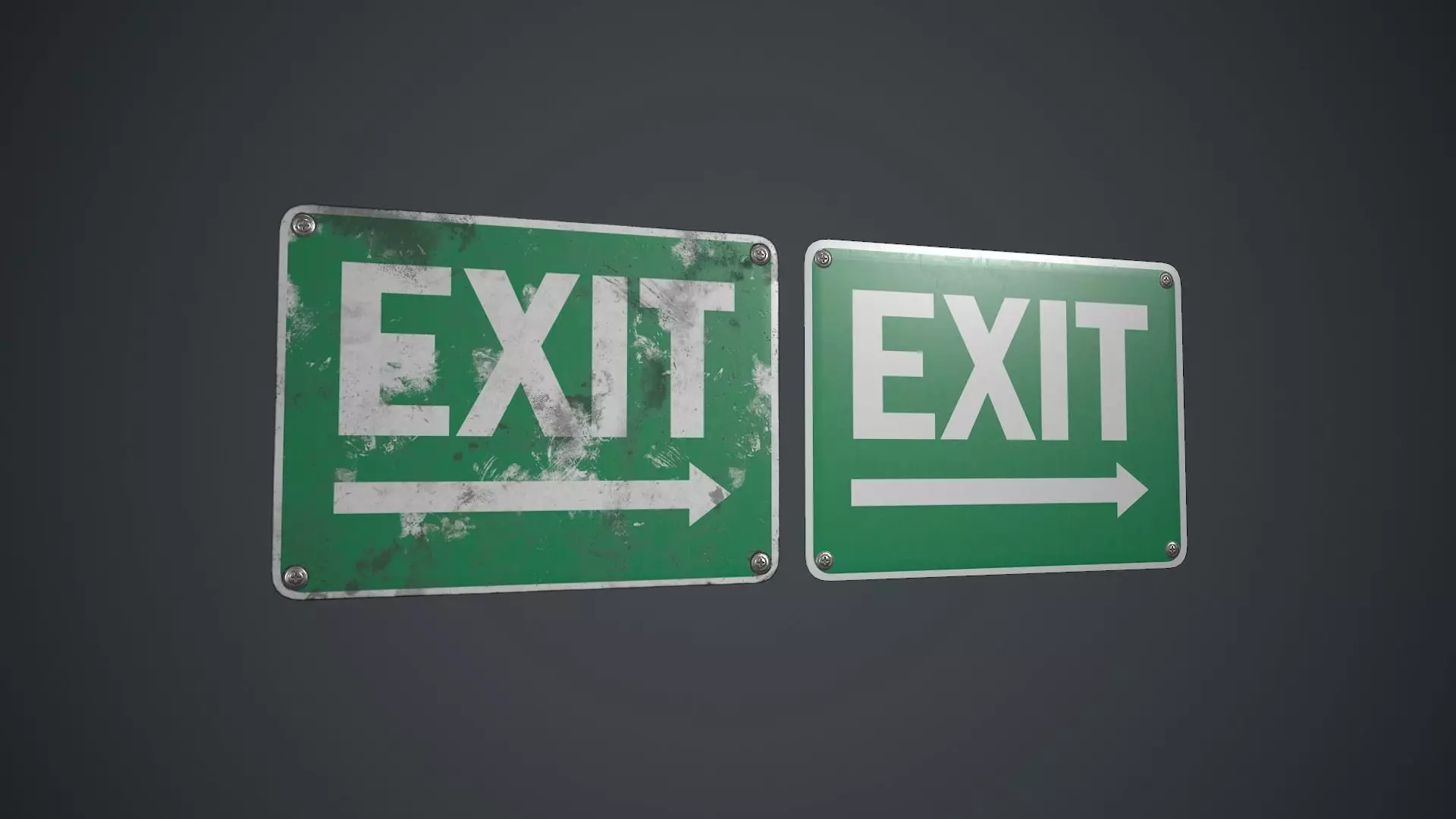 Low poly Plastic Exit Sign with PBR Textures. There are three different sign texture variations.