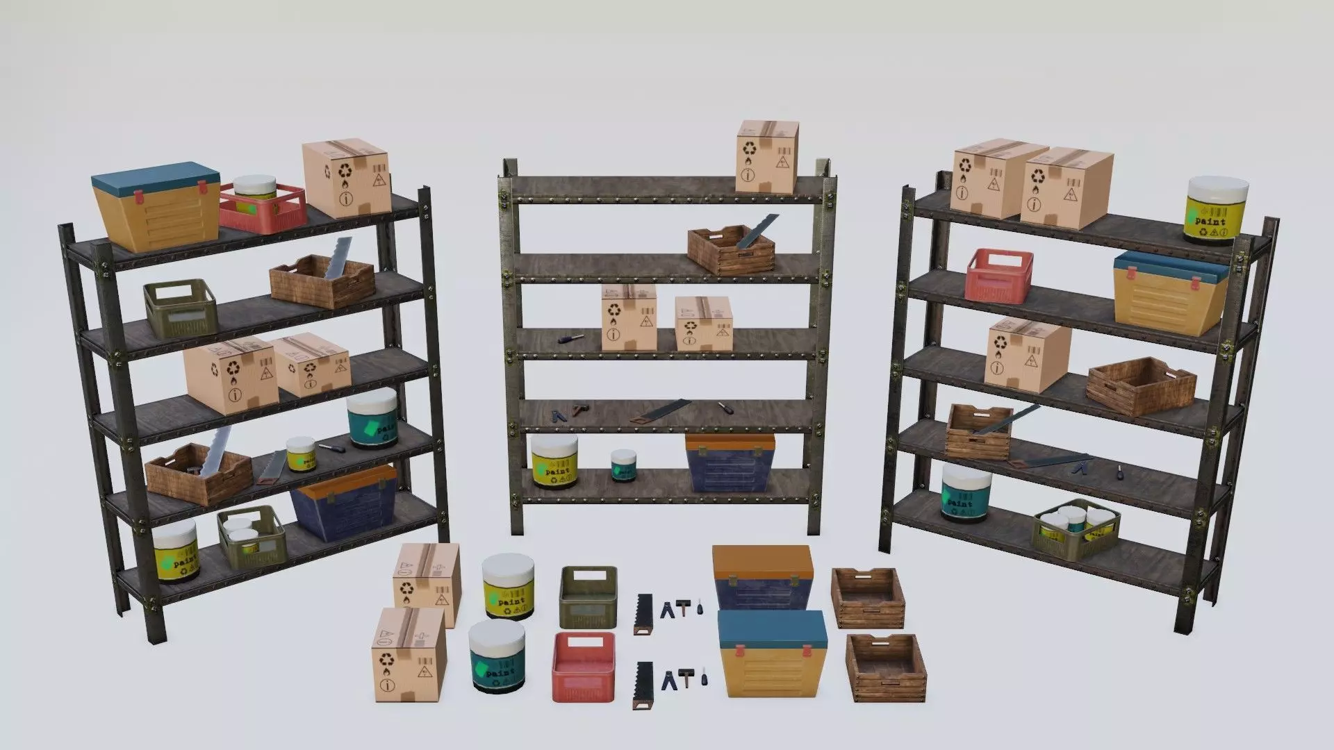 This GAME READY RACK and Environment Props 3d model set is created with 3d Software and textured in Substance Painter. You can use these models in your games, visual projects etc.