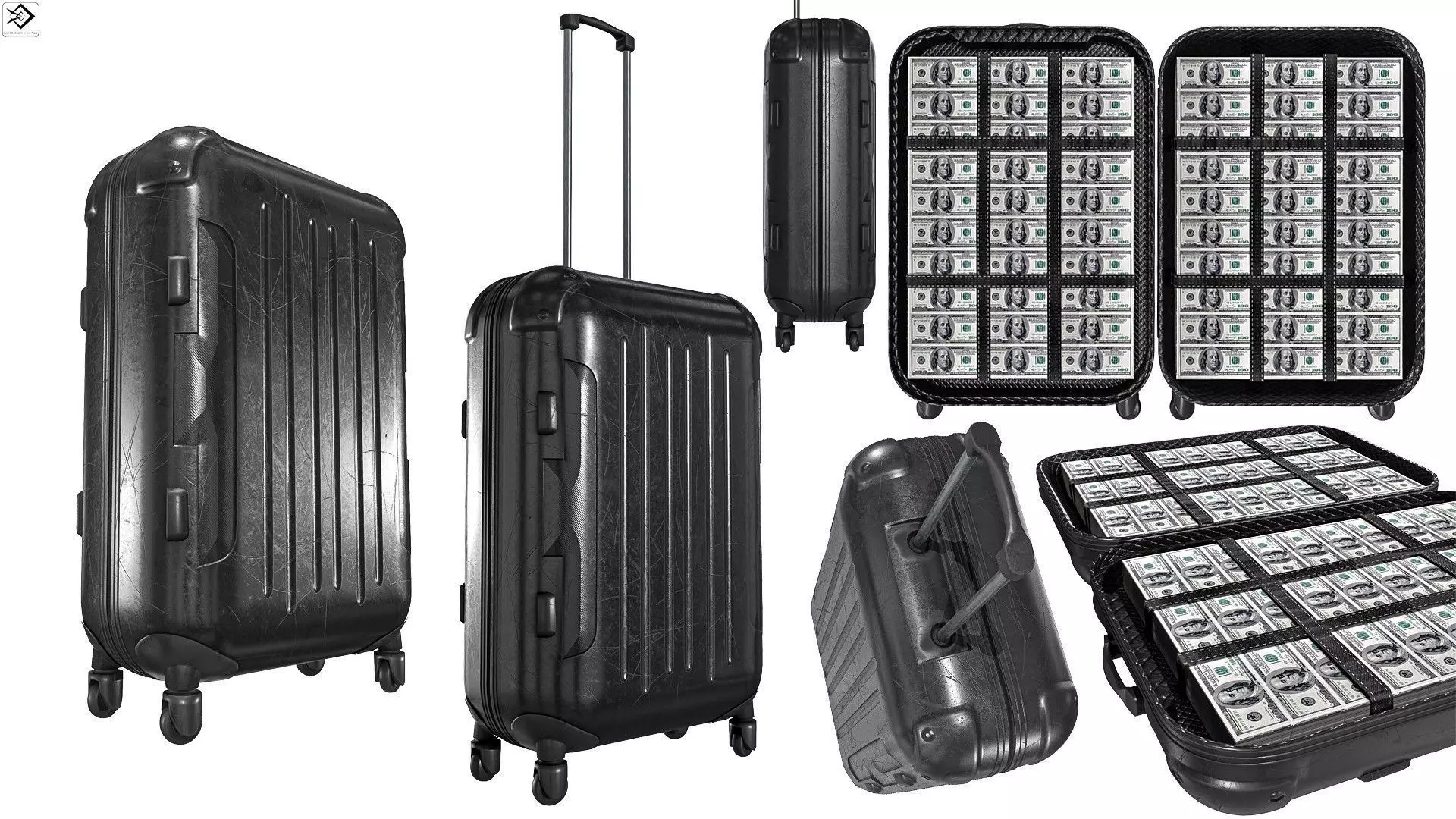 Rolling Travel Suitcase With Money Low-poly 3D model