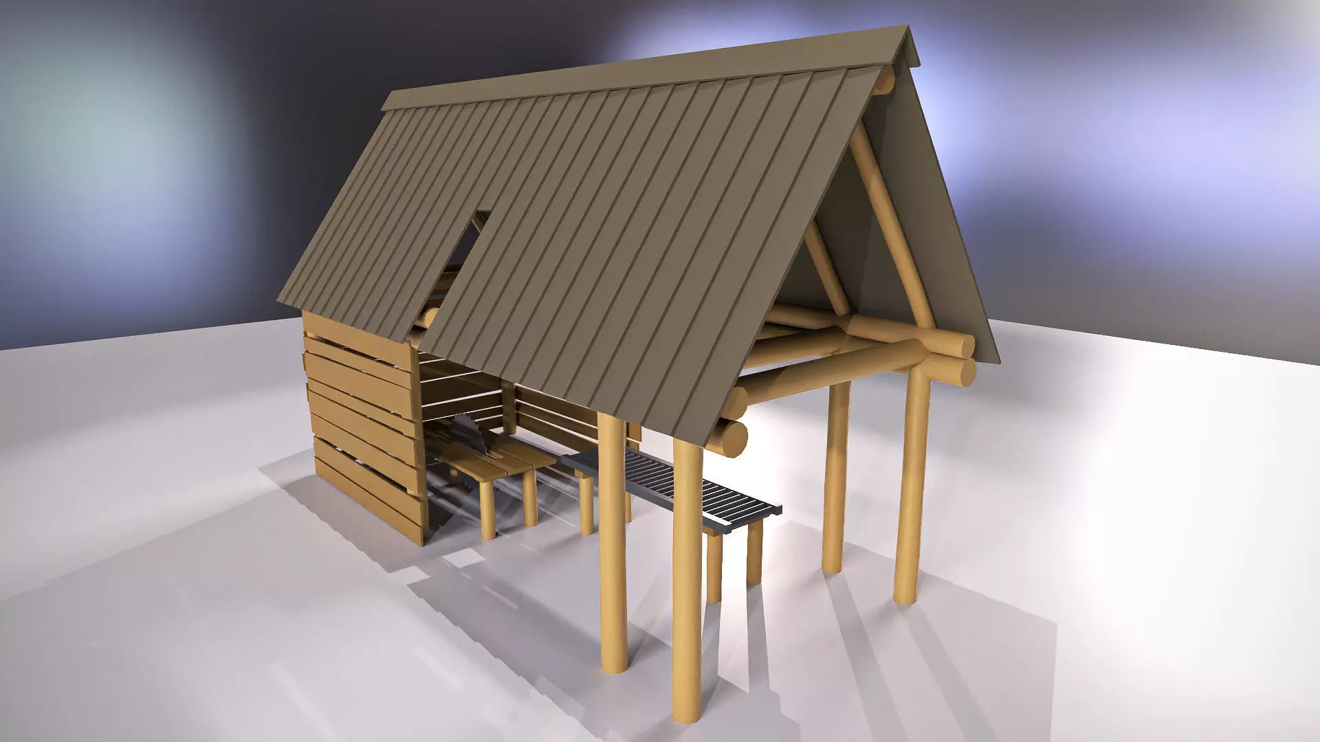 The great 3D model to create a cute sawmill scene ready for casual games. A sawmill itself is loaded into the log shelter with brown roof. The sawmill itself has metallic cutting elements and the log stand.
