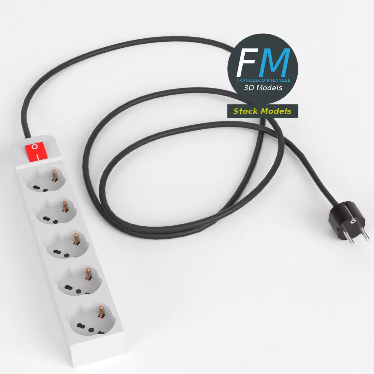 Schuko strip and plug 3D Model, nr. 1 in my collection. 3 individual objects (power strip, cable, plug), sharing the same non overlapping UV Layout map, Material and PBR Textures set. Production-ready 3D Model, with PBR materials, textures, non overlapping UV Layout map provided in the package.