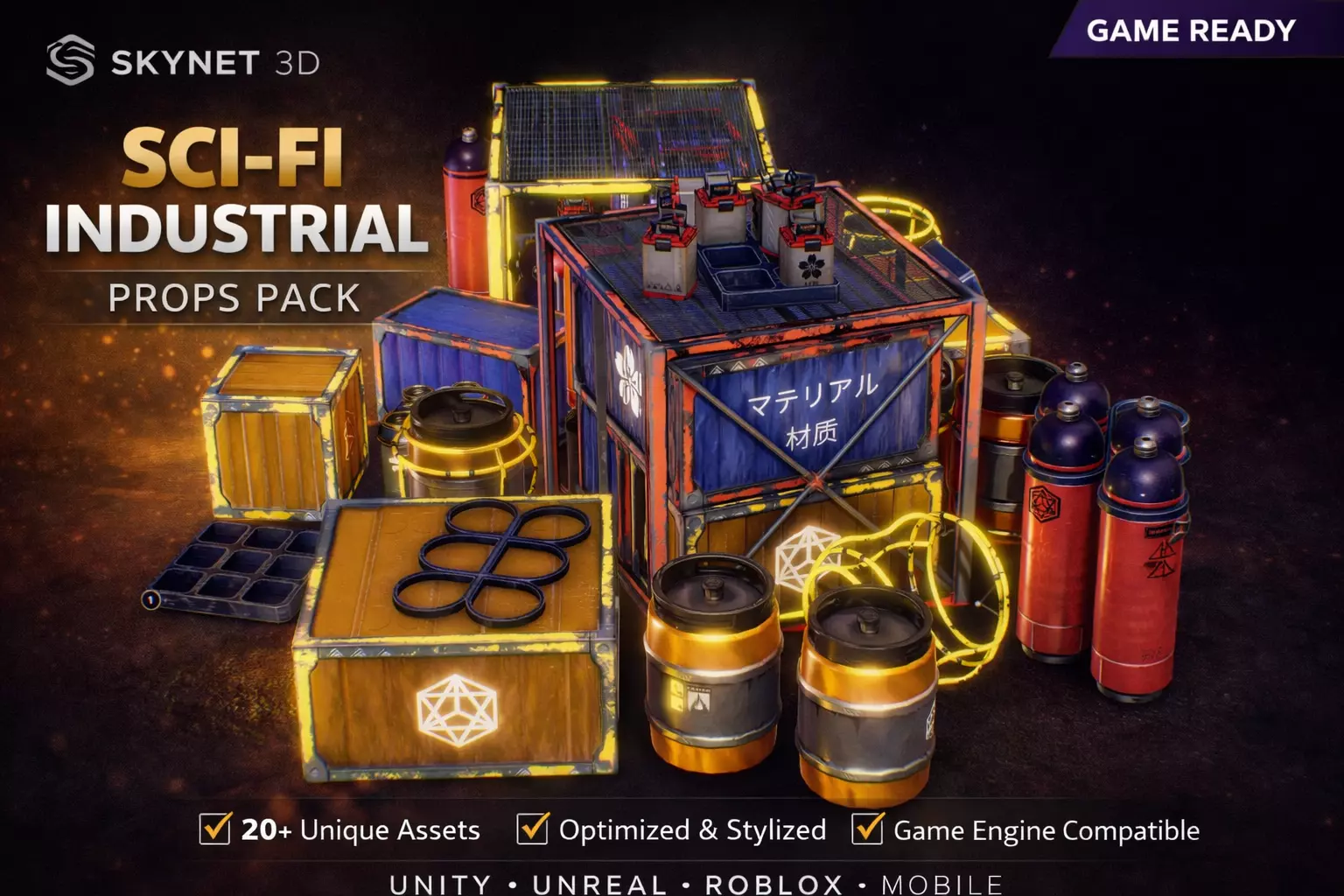 This pack includes a collection of detailed containers crates barrels and industrial elements perfect for futuristic environments sci fi scenes and modular level design