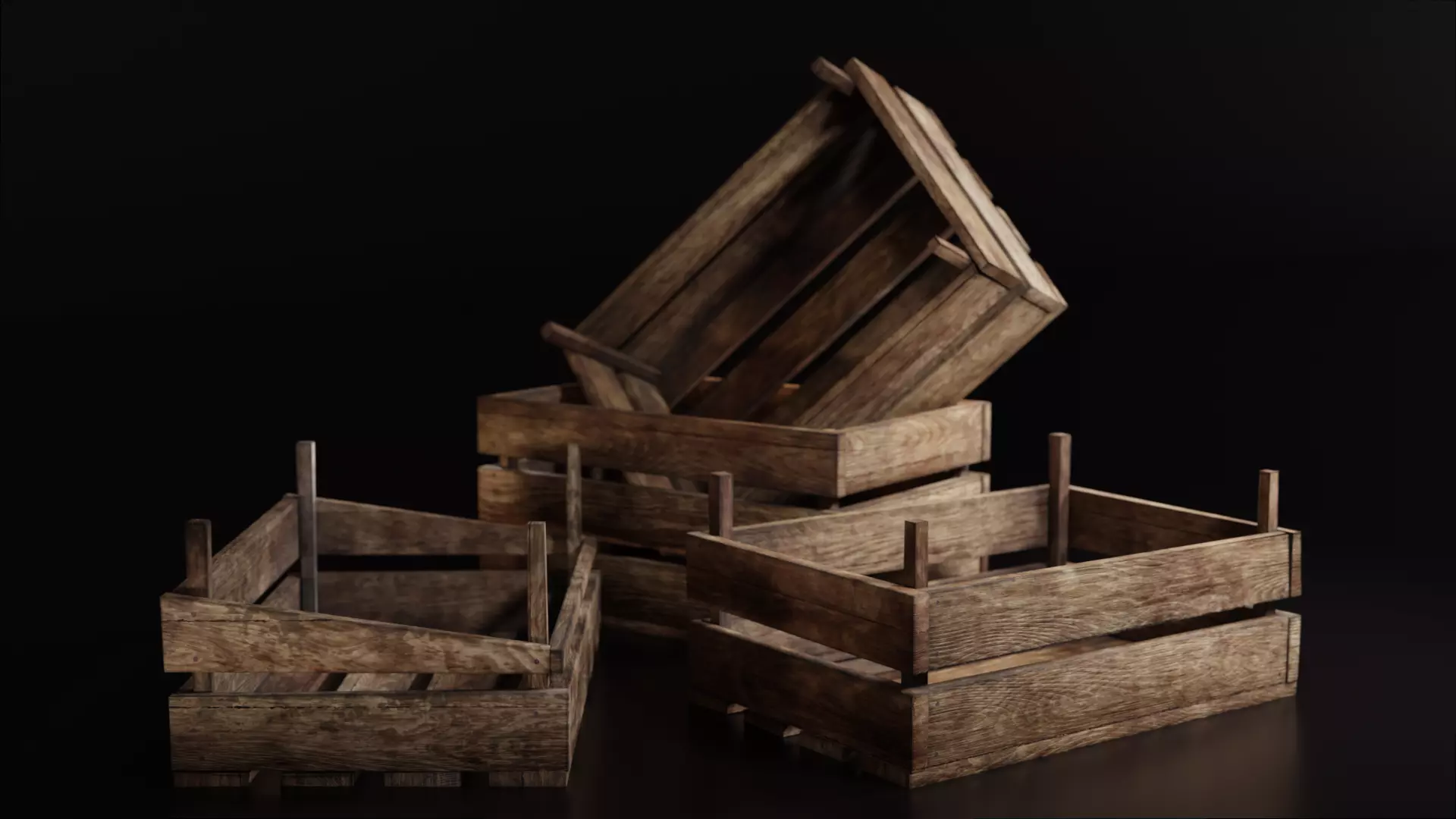 Set of three 3 wooden storage boxes Crate Low-poly Low-poly 3D model