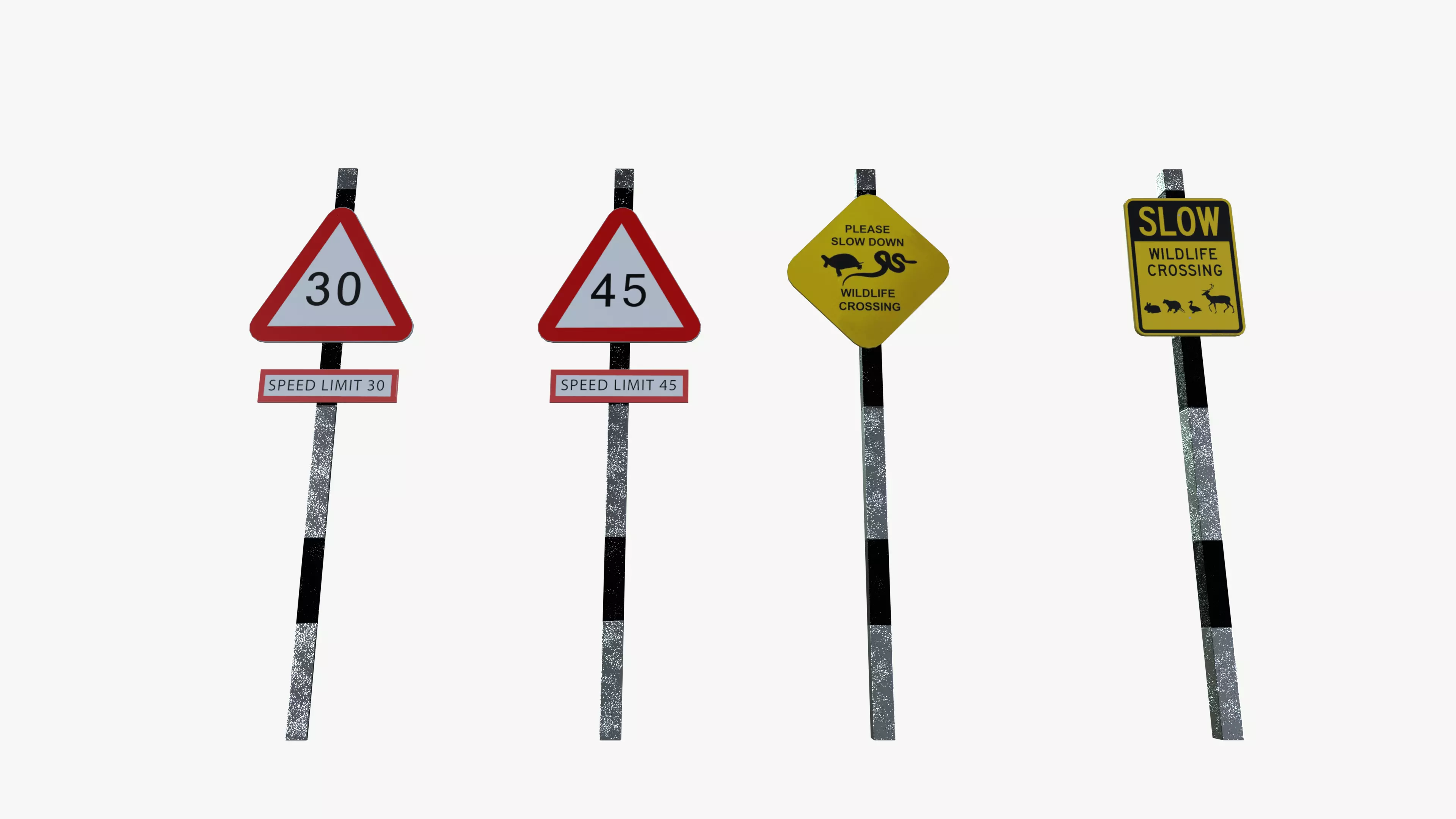• The second sign, a caution sign, is rendered in a bright yellow, alerting motorists to potential hazards ahead. Finally, the third sign, indicating a pedestrian crossing, is designed with clear symbols and contrasting colors to enhance visibility, thereby facilitating safe passage for individuals on foot.