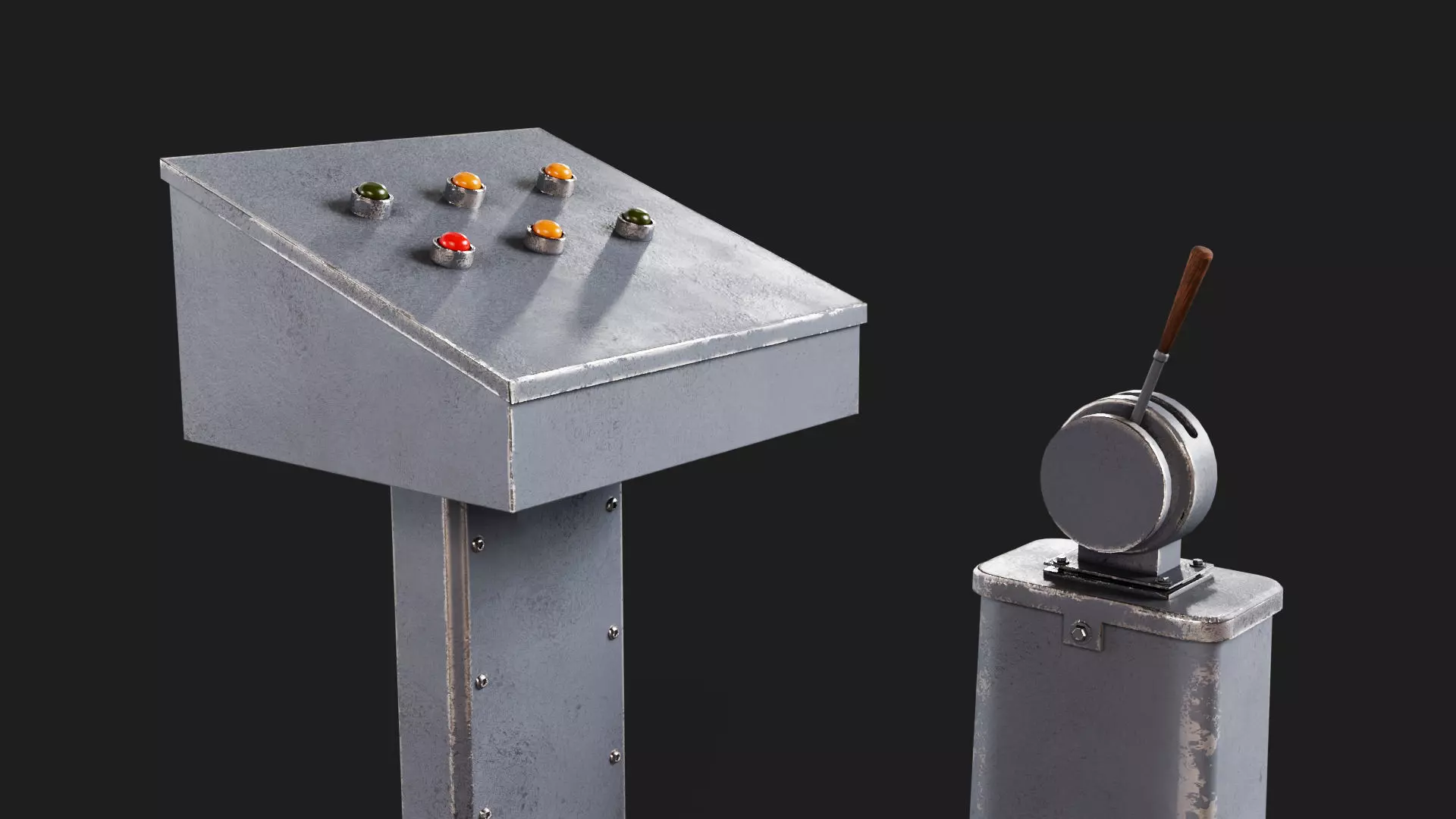 This is a realistic 3d model of a Simple Old Industrial Control Post old from the world war 2 era. These posts or podiums are often found in a factory, operating or controllingheavy machinery. Operators typically stand while operating the console while observing manufacturing, production or the relevant process.