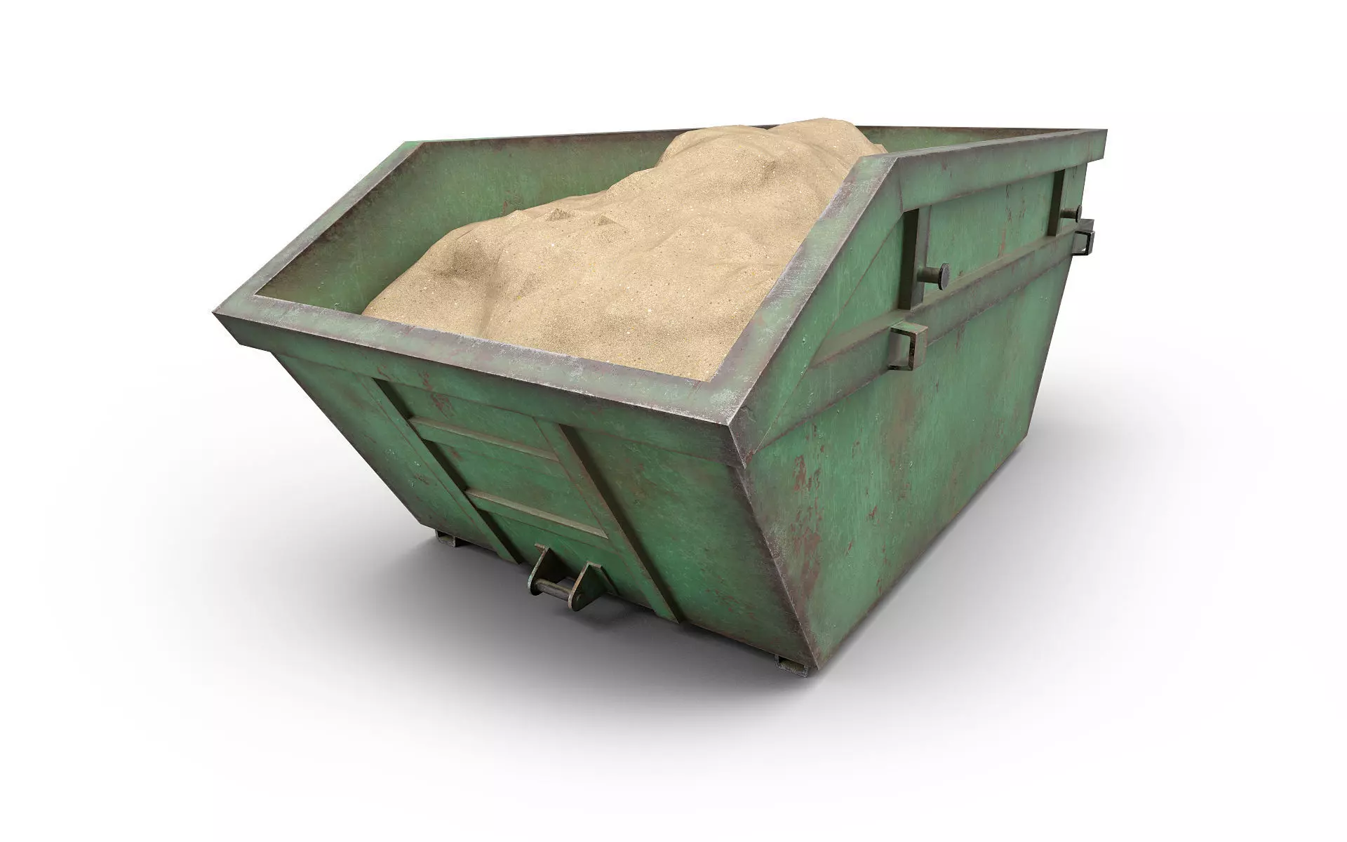 Realistic 3D model Skip Dumpster with sand.