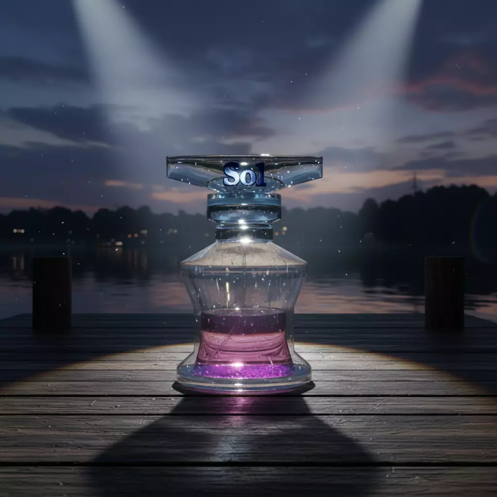 A stylish 3D model of the Sol perfume bottle, designed with a premium glass material and realistic liquid inside.Perfect for product visualization, advertising, branding, and close-up renders.