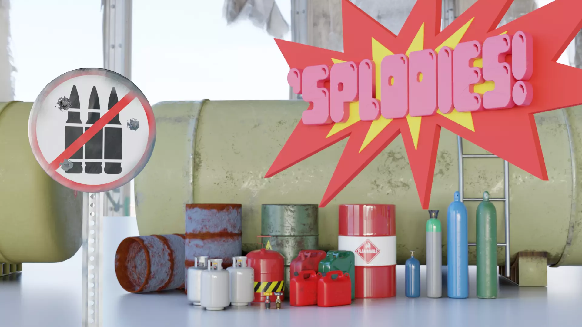 Game assets that are primed to explode....or not. They could be dressing for industrial mockups.