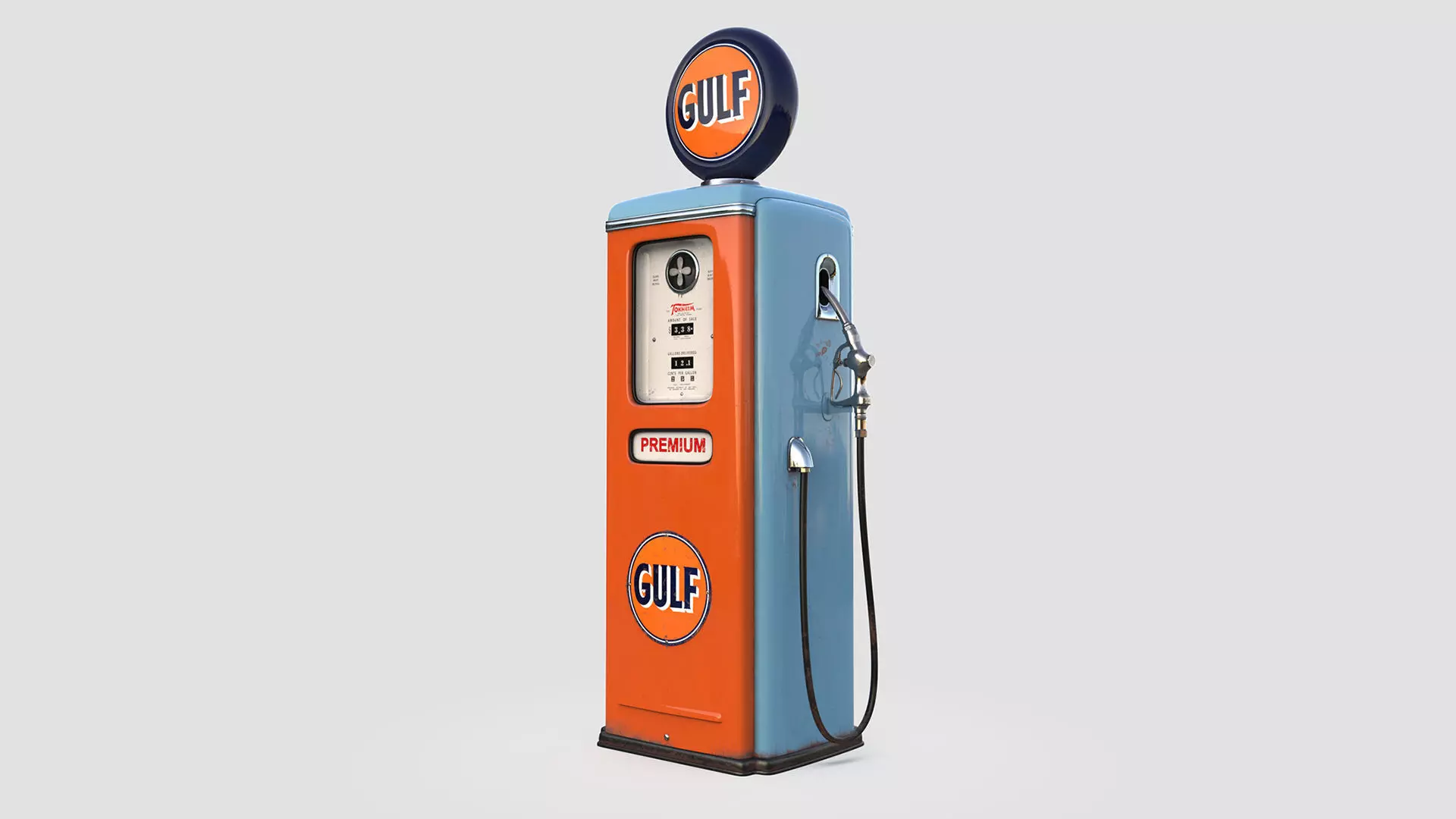 High quality Gulf Gasoline Pump model.Manufacturer: Tokheim.Model: T39 Year: 1948Modeled in Maya 2018.All textures with 4096x4096.Real-world scale.Main Maps (Vray): Base Color, Glossiness, ior, Normal map, Opacity and Refection.Extras Maps(PBR): Roughness, Metalness and Occlusion.