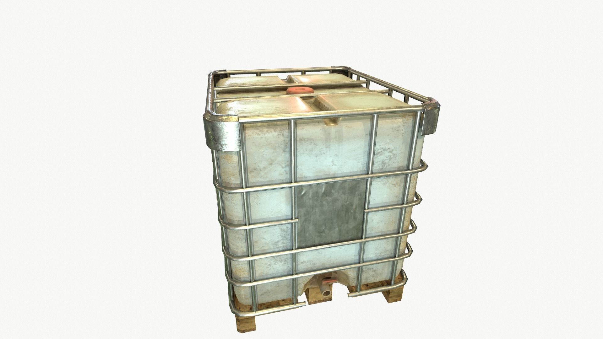 -High detailed water container 1000L 3D model with photo-realistic textures.-Game ready high detailed asset for every engine.-PBR Ready -Preview images rendered with marmoset for game engine preview-Model has real-world scale -Ready to import to game engine