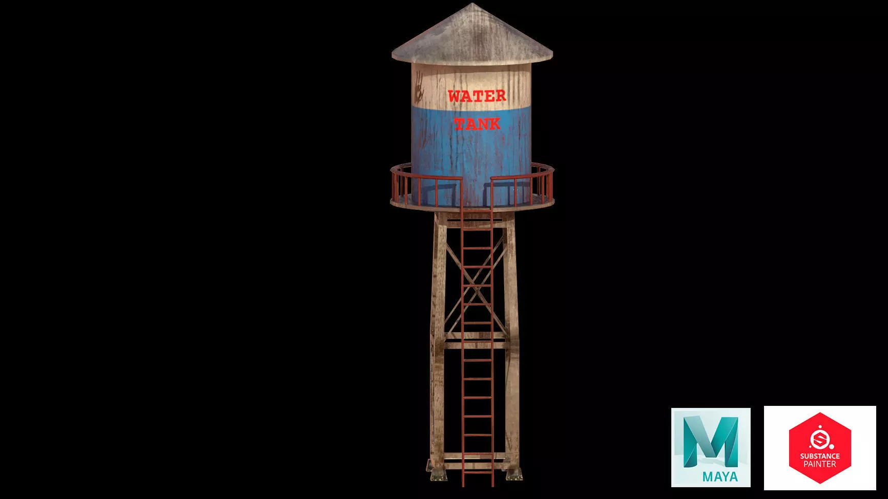 Low poly Water Tower TankMayasubstance painterFBXMBMAArchive fileOBJFBM Folder