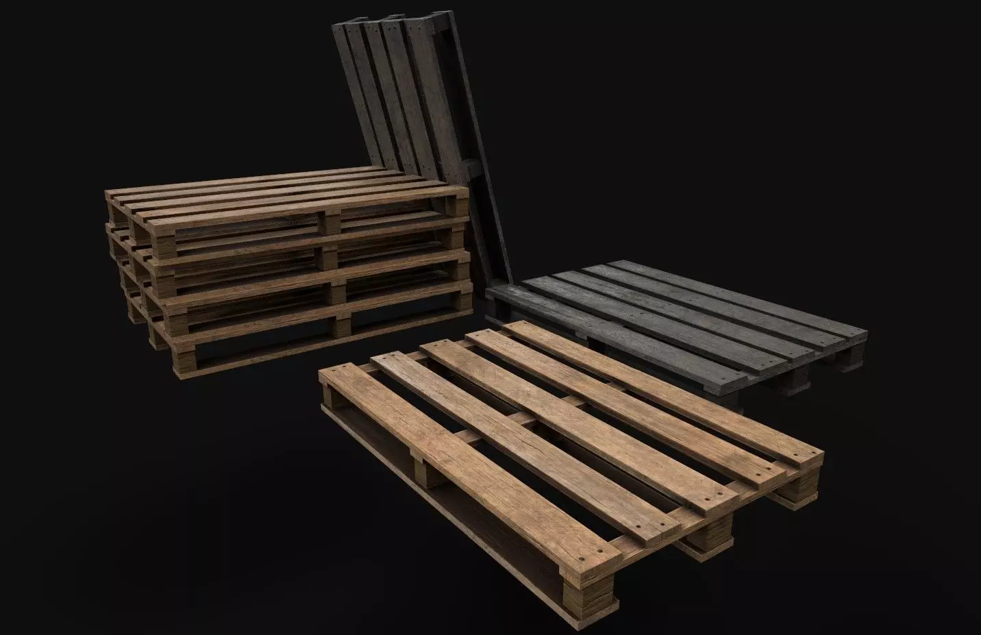 3D Low-poly Pallets modeled in Maya and textured in Substance Painter, ready for games.