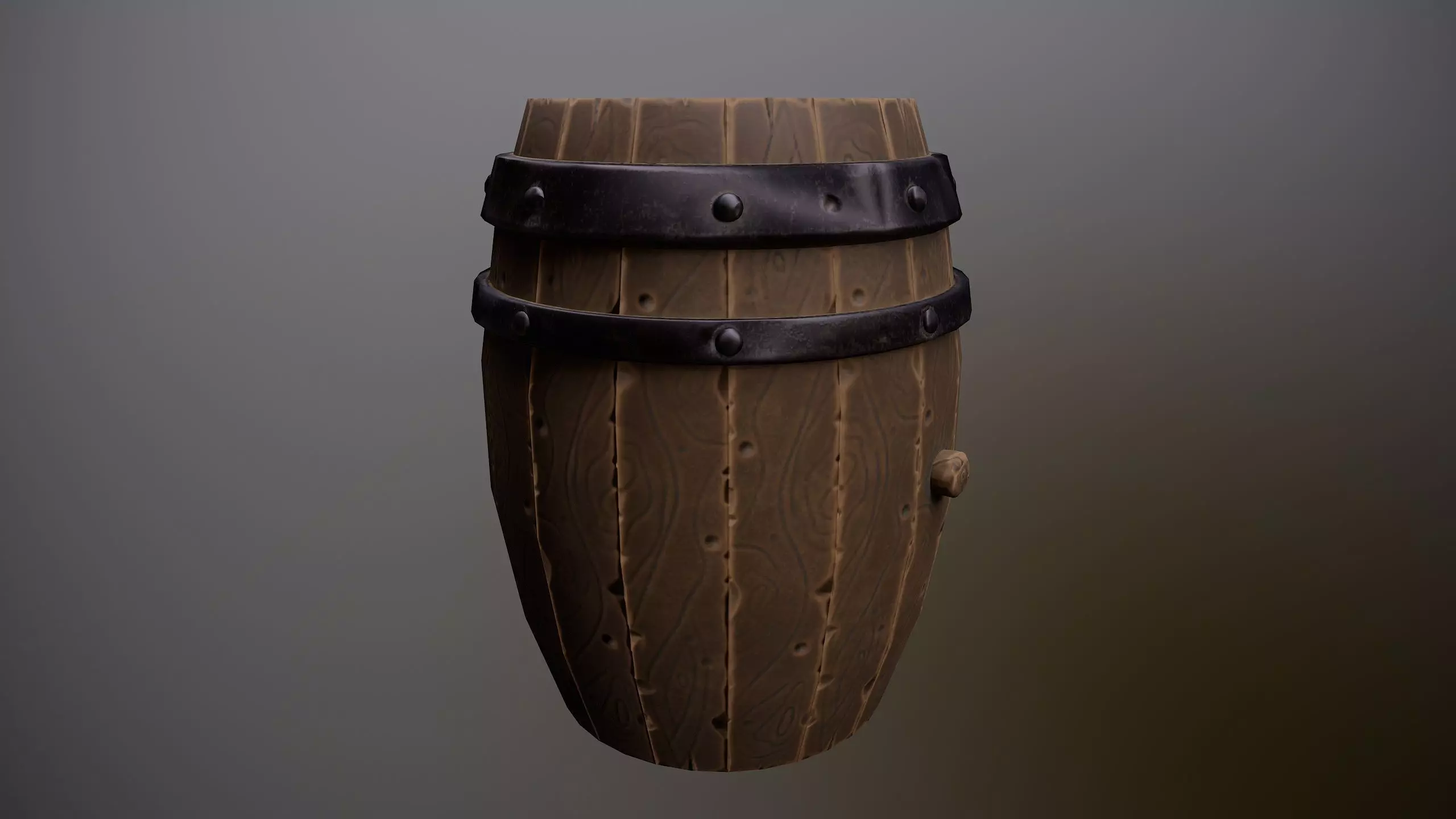 Wooden Barrel with Metal Hoop Game Ready Low P Low-poly 3D model
