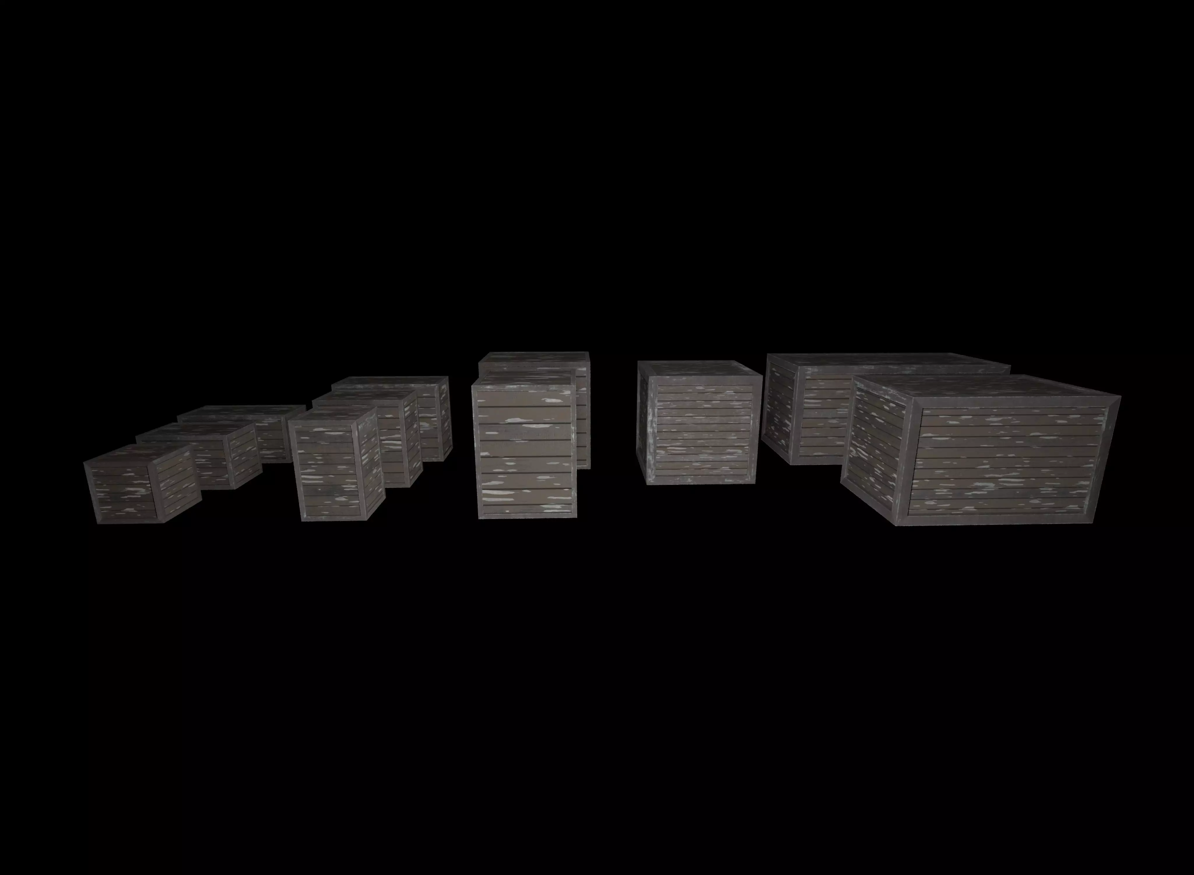 Wooden box set Low-poly 3D model