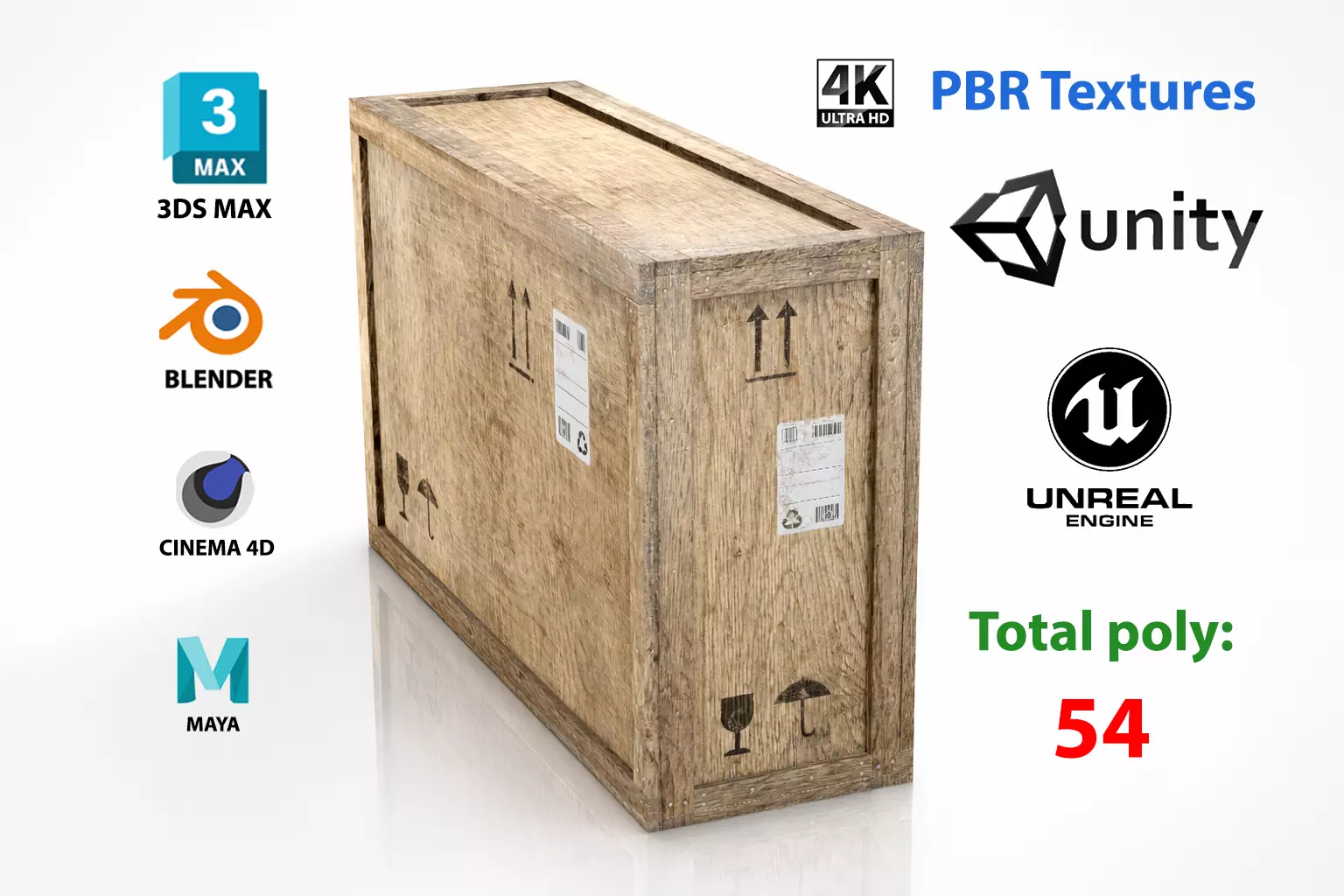 This wooden cargo crate model is designed to deliver maximum realism with minimal system load.