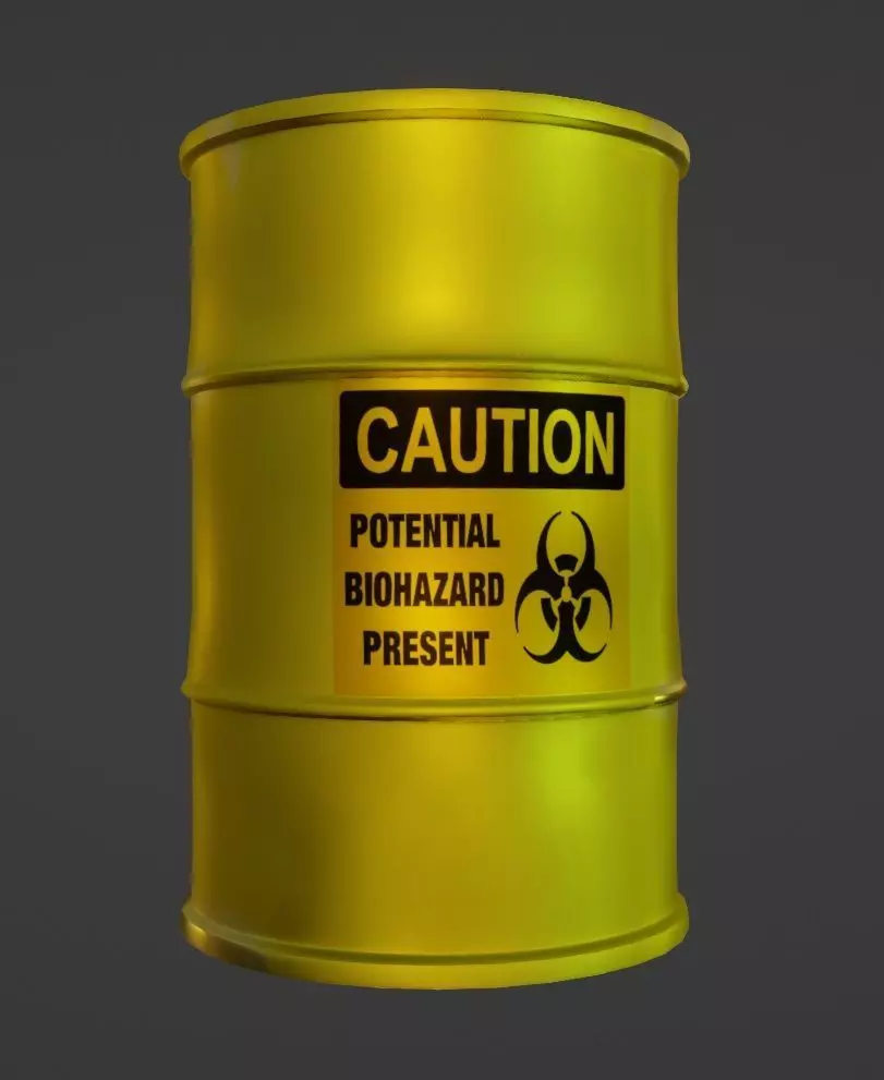 YellowA barrel labeled a biological threat, in which viruses could presumably be transported.Low and high poly model, STL, OBJ, FBX and Blend format.Normal, color and roughness maps.