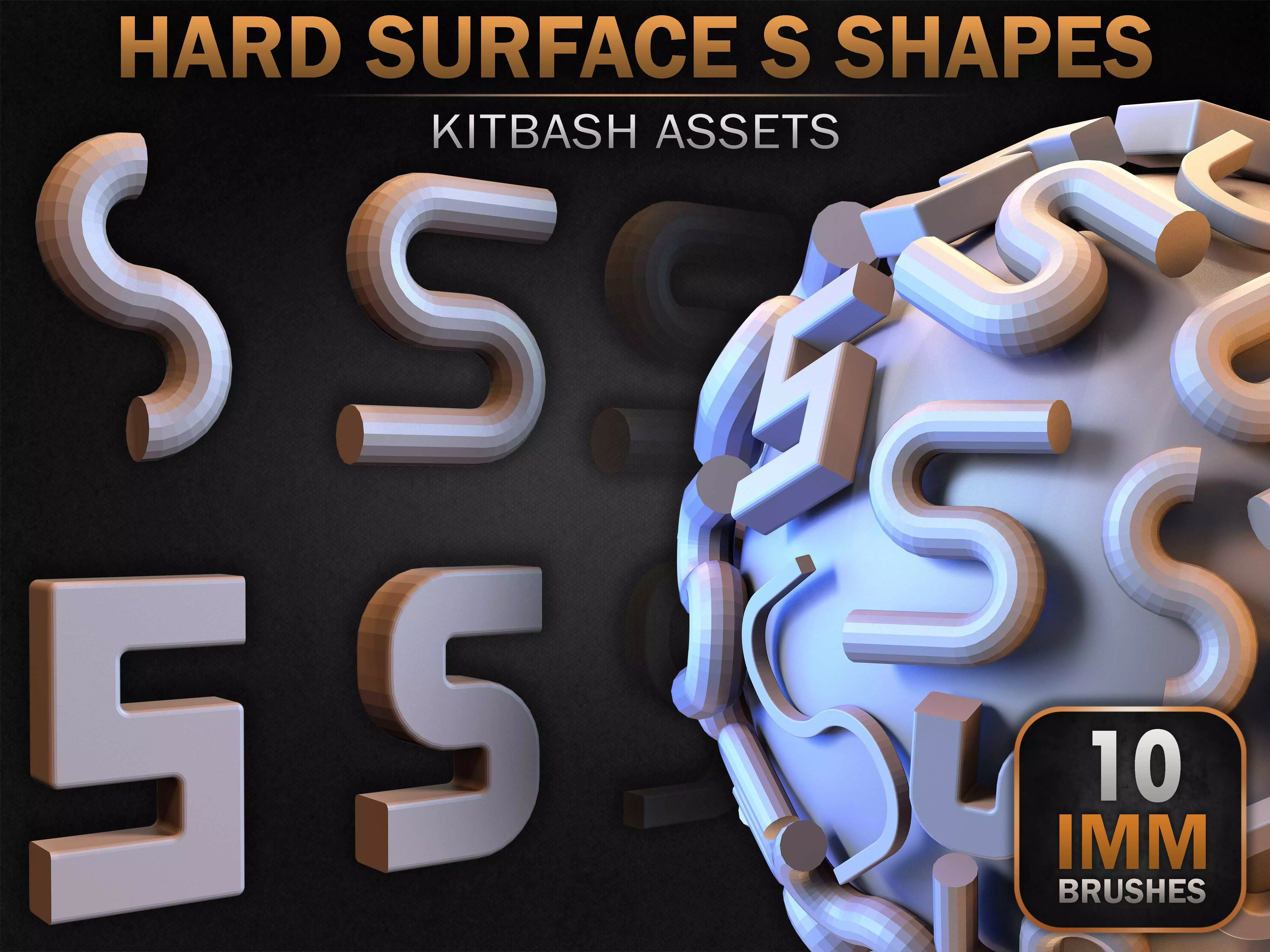 I am presenting a focused collection of 10 hard surface S-shaped elements, structured for modular construction, flow-based design, and advanced hard surface workflows.