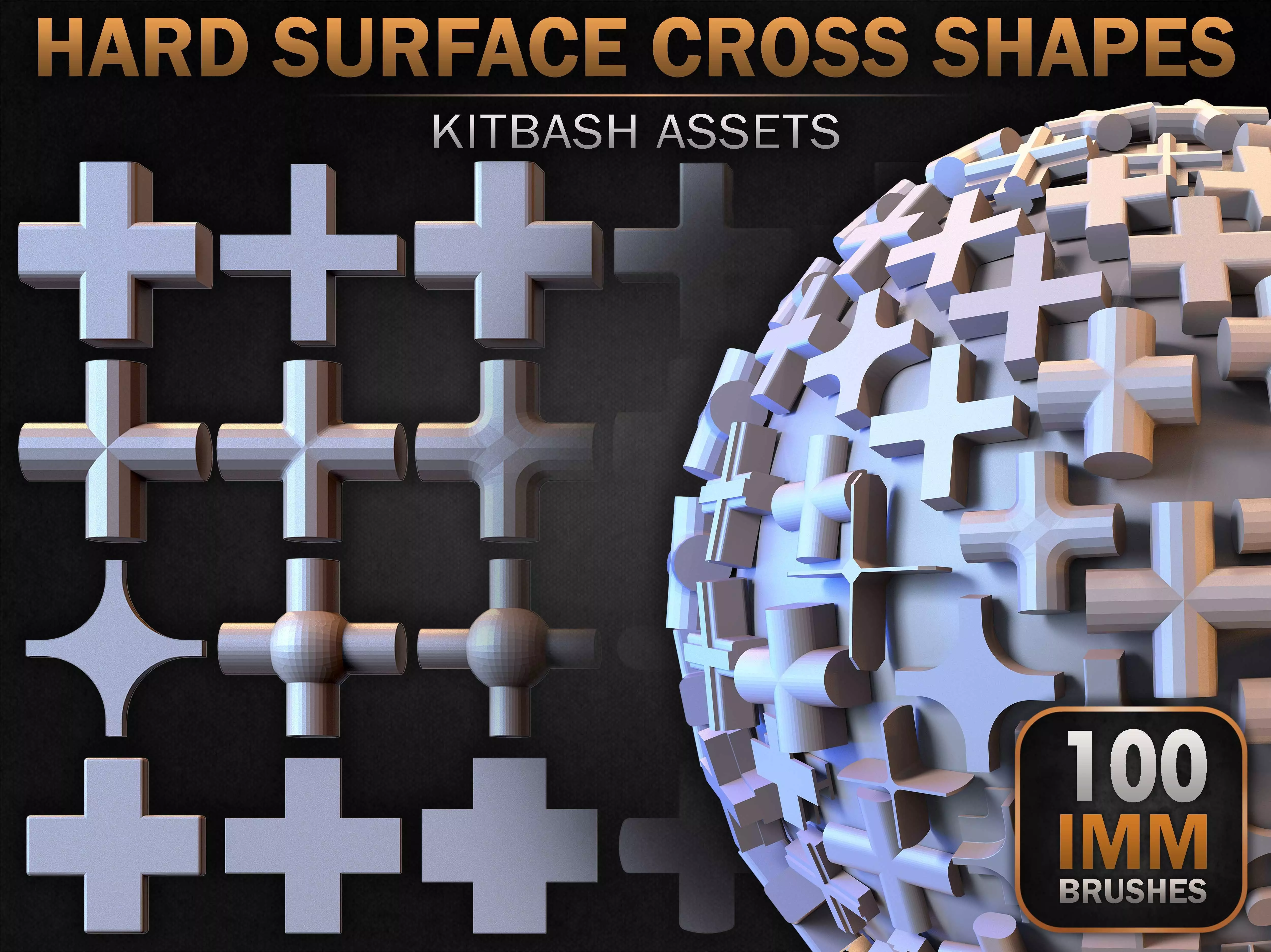 The set also includes mechanical and structural designs such as pipe cross junctions, frame intersections, support structures, industrial connectors, architectural cross frames, mechanical hubs, and sci-fi structural elements. These shapes are essential for creating multi-directional intersections and central connection points within complex assemblies.