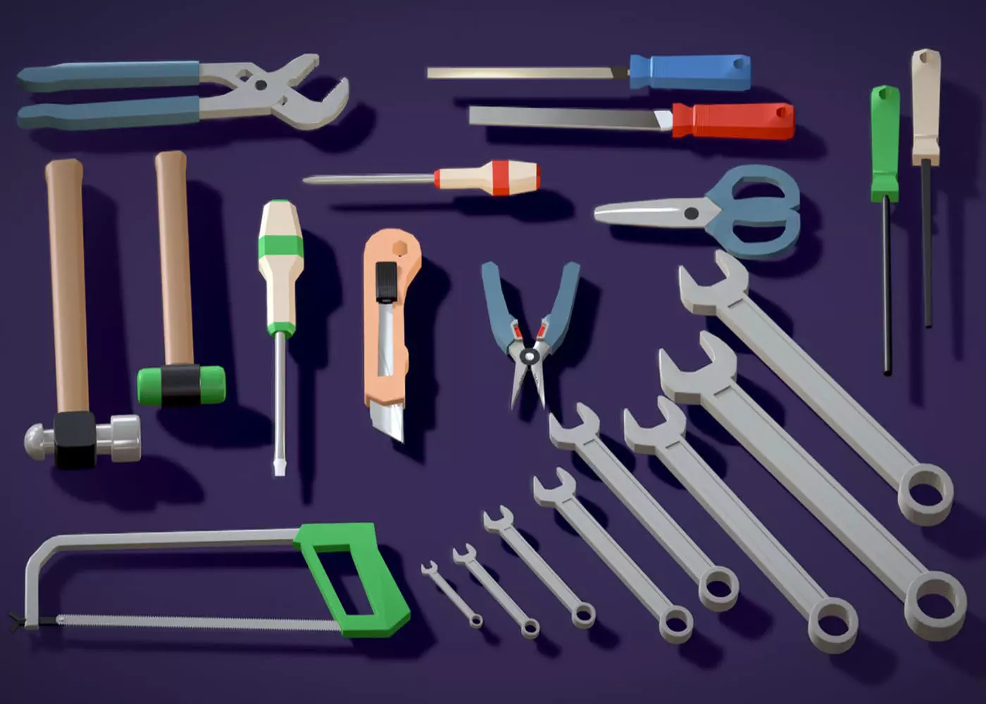 • Explore an extensive range of low poly 3D models, including wrenches, saws, hammers, pliers, and more.
