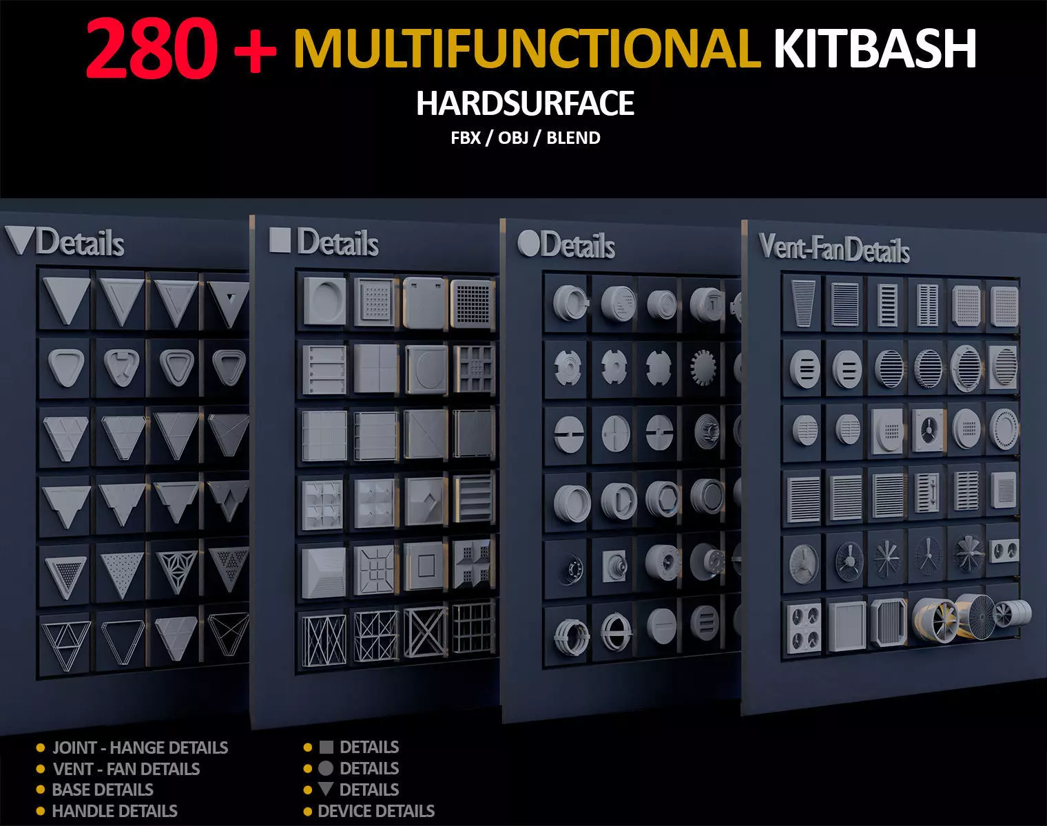 280+ 3D model Vent and Fan Details base on Circle Details base on SquareDetails base on DiamondBase Handle Joint and hinge PanelsDetail mix