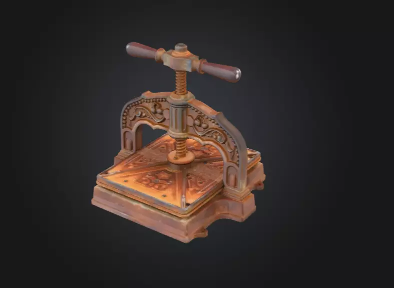 Created with PBR textures, the Antique Book Press showcases aged metal, polished brass highlights, and subtle patina buildup that enhances its vintage authenticity. The reflective surfaces catch light beautifully, making it suitable for both cinematic close-ups and real-time rendering. Each bolt, screw, and handle is meticulously modeled to ensure mechanical believability while maintaining an aesthetic reminiscent of antique workshops and classic libraries.