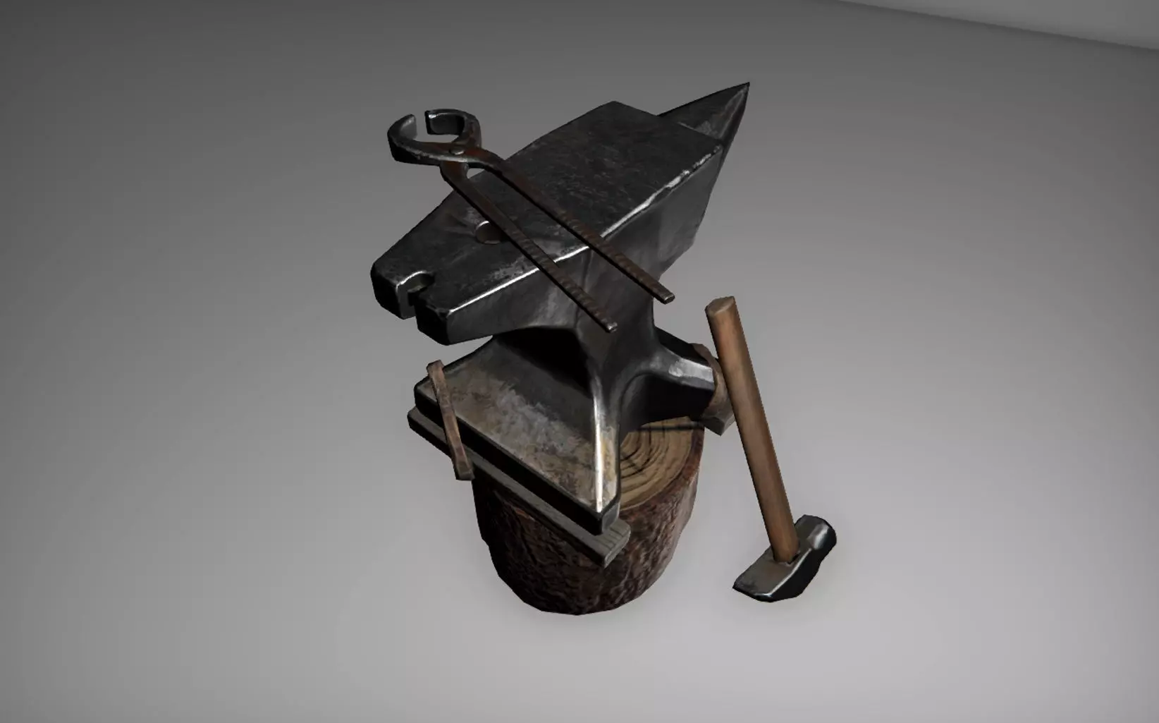 High quality anvil for your forge. Iron anvil, iron hammer, iron tongs. For survival and rpg games2450 trisPBR textures