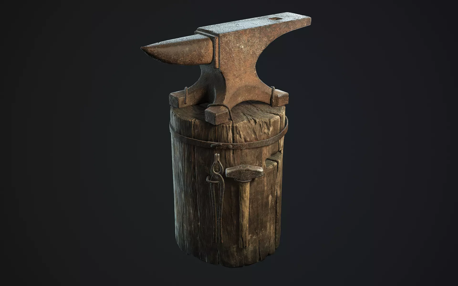 Game ready anvil on a tree stump model.