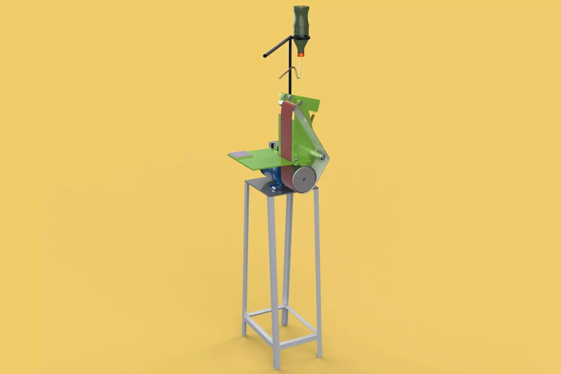 Sincerely Your, SURF3DMORE INFORMATION ABOUT 3D MODELS :A BELT SANDER OR STRIP SANDER IS A SANDER USED IN SHAPING AND FINISHING WOOD AND OTHER MATERIALS. IT CONSISTS OF AN ELECTRIC MOTOR THAT TURNS A PAIR OF DRUMS ON WHICH A CONTINUOUS LOOP OF SANDPAPER IS MOUNTED. BELT SANDERS MAY BE HANDHELD AND MOVED OVER THE MATERIAL, OR STATIONARY (FIXED), WHERE THE MATERIAL IS MOVED TO THE SANDING BELT. STATIONARY BELT SANDERS ARE SOMETIMES MOUNTED ON A WORKBENCH, IN WHICH CASE THEY ARE CALLED BENCH SANDERS. STATIONARY BELT SANDERS ARE OFTEN COMBINED WITH A DISC SANDER.BELT SANDERS CAN HAVE A VERY AGGRESSIVE ACTION ON WOOD AND ARE NORMALLY USED ONLY FOR THE BEGINNING STAGES OF THE SANDING PROCESS, OR USED TO RAPIDLY REMOVE MATERIAL. SOMETIMES THEY ARE ALSO USED FOR REMOVING PAINTS OR FINISHES FROM WOOD. FITTED WITH FINE GRIT SAND PAPER, A BELT SANDER CAN BE USED TO ACHIEVE A COMPLETELY SMOOTH SURFACE.