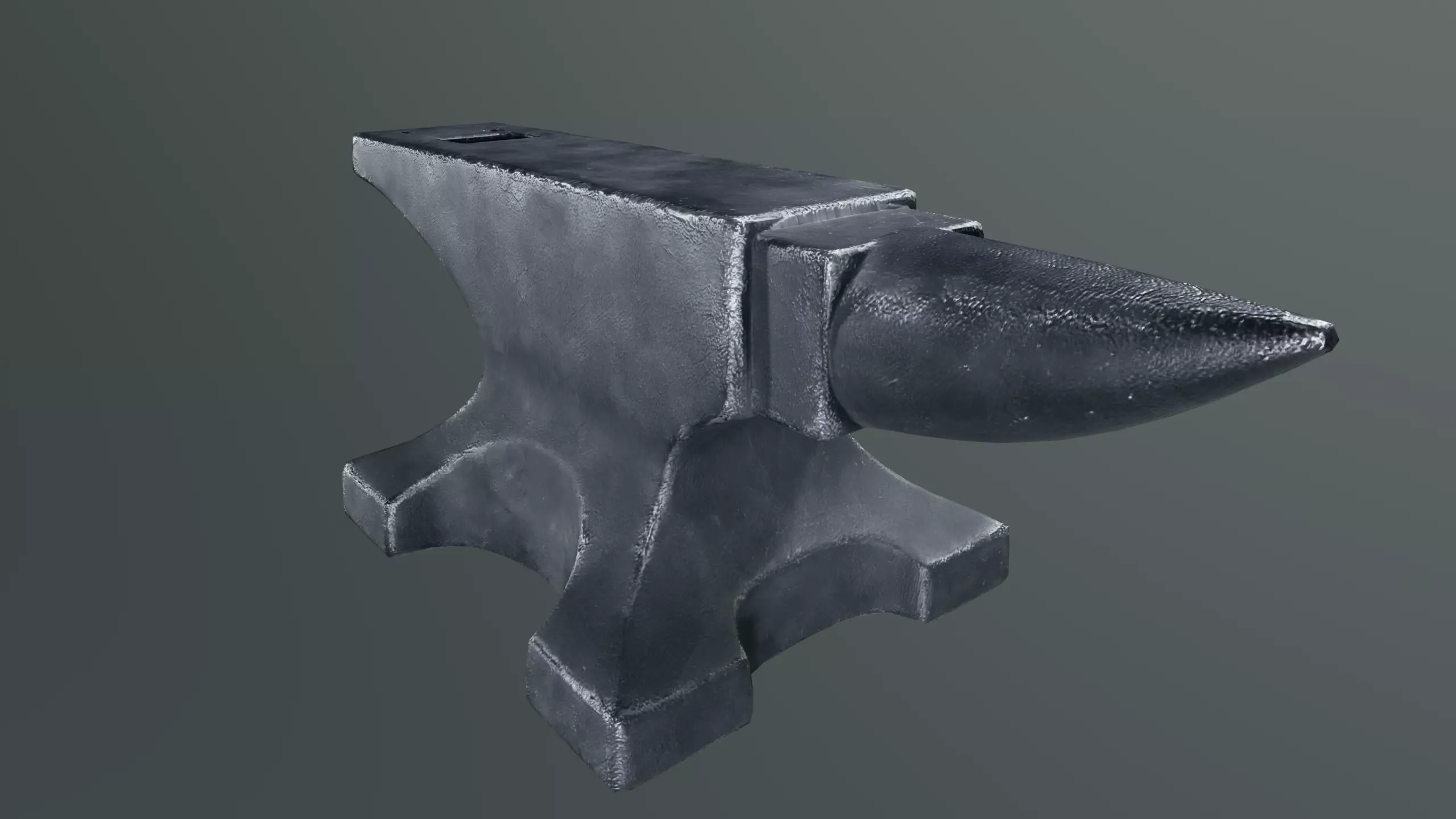 The model features authentic industrial proportions including a forged horn, hardy hole, pritchel hole, and worn working surface with believable hammer-strike wear. Surface detail reflects practical workshop use with subtle edge polishing, oxidized steel tones, and accumulated grime in recessed areas.