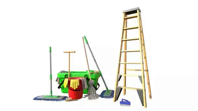Cleaning Cart With Mop and Buckets Cleaning Products Fur Setsfiles_ 3dsmax_2020FBXOBJtextures_4096*4096 PNG PBR
