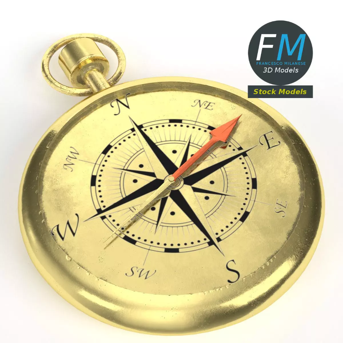 Compass (navigation) tool 3D Model. 2 individual objects (base, needle; so, you can easily rotate or even animate it), sharing the same non overlapping UV Layout map, Material and PBR Textures set. Production-ready 3D Model, with PBR materials, textures, non overlapping UV Layout map provided in the package.