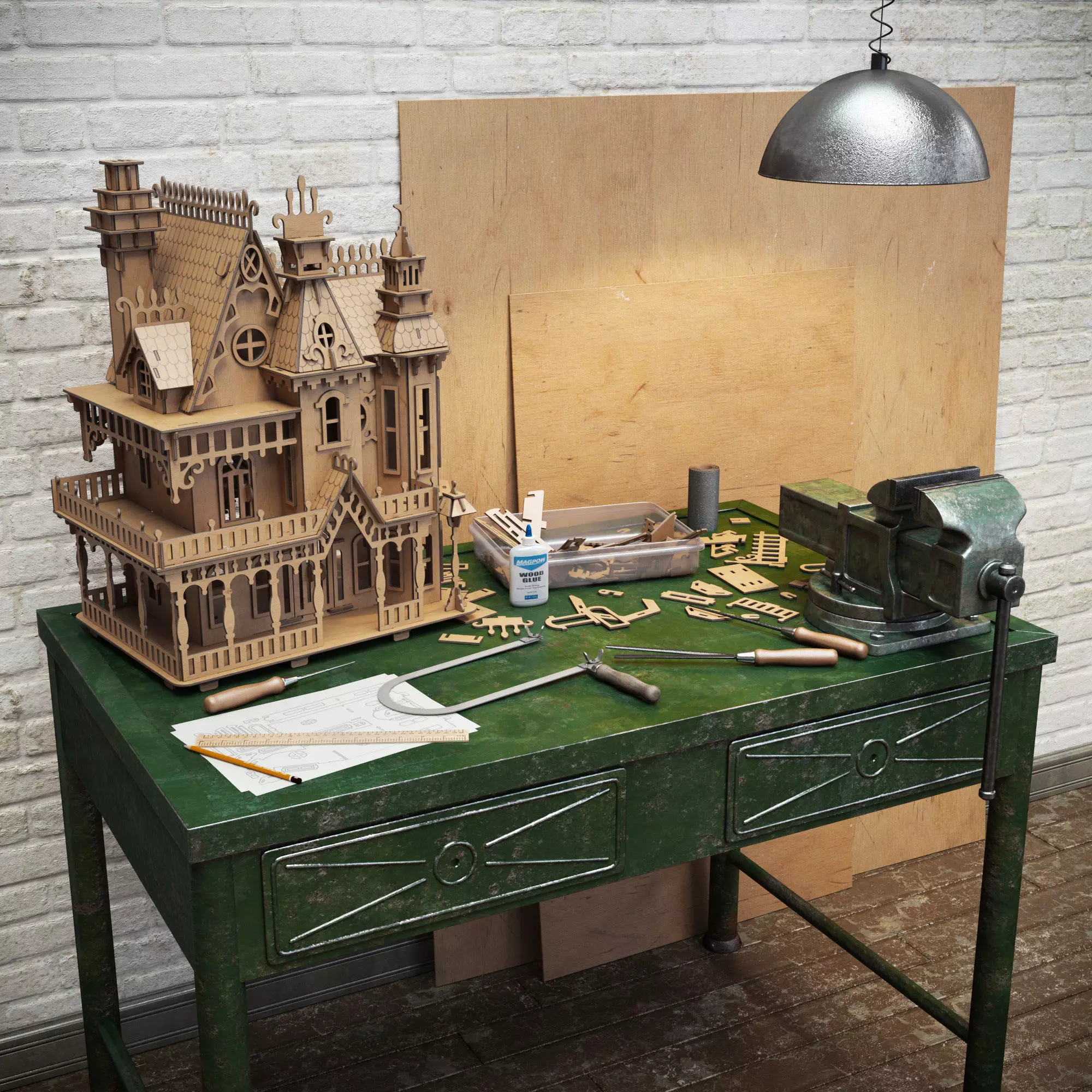 The model has material settings that define how surfaces look (color, shine, transparency, etc.).
