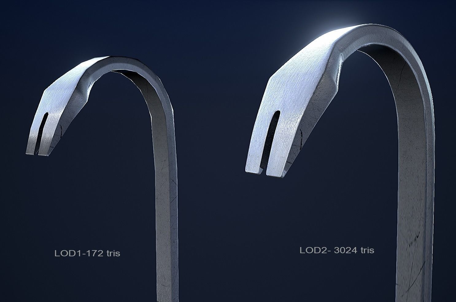 Artssionate's crowbar is a detailed game ready model with PBR textures, modeled based on real world scale. The model includes 2 LODs and is detailed enough for close shot renders.