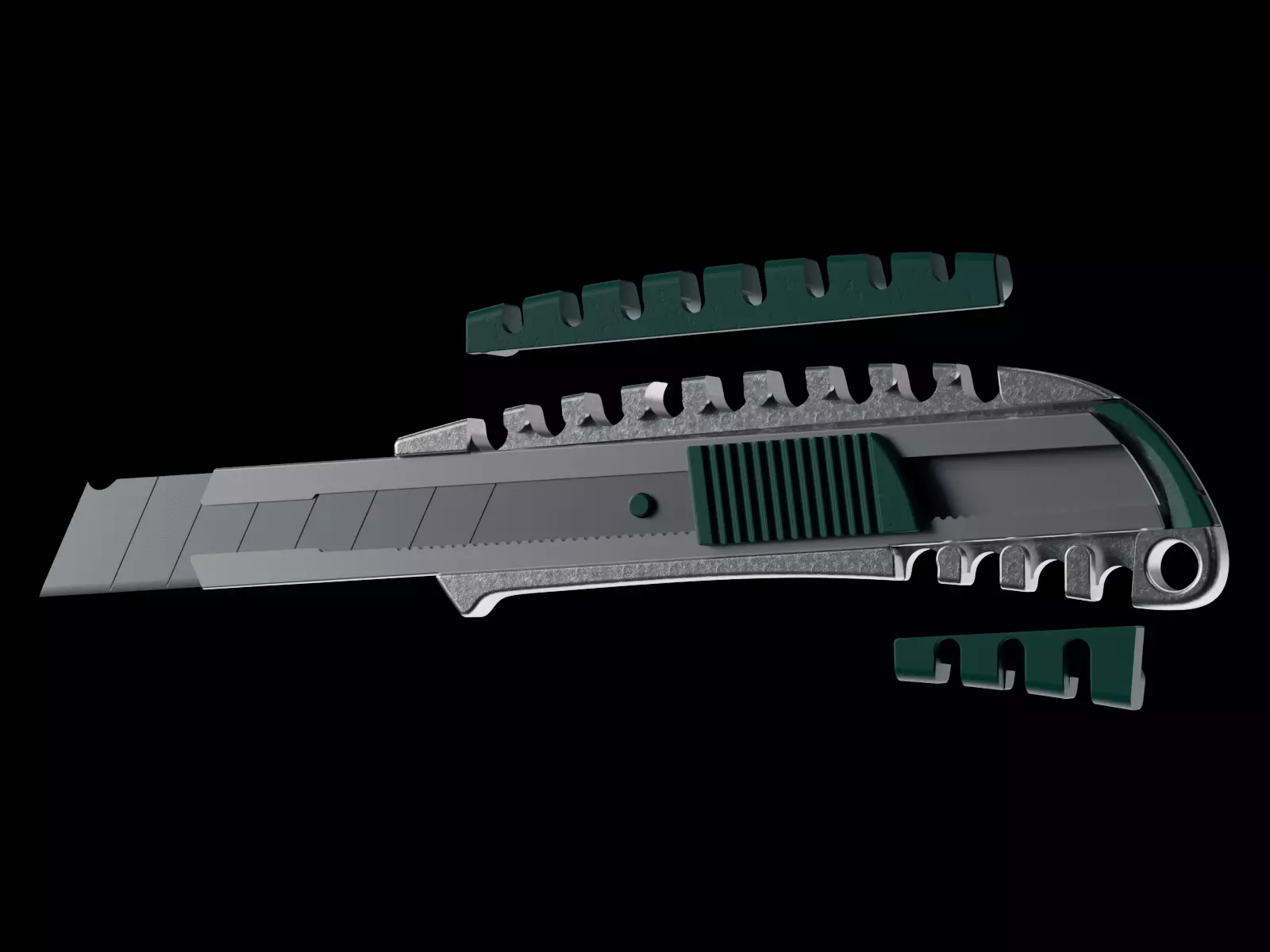 The model has material settings that define how surfaces look (color, shine, transparency, etc.).