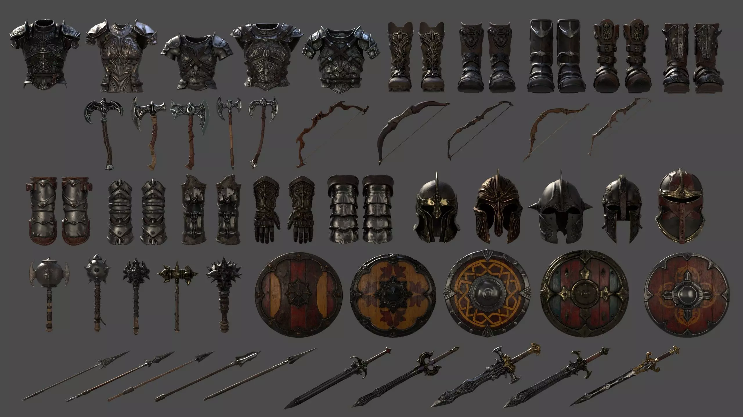 A high-quality dark medieval war gear asset pack designed for games, cinematics, and real-time projects.This collection includes a complete set of medieval weapons and armor with multiple variations, optimized for professional workflows. All assets are game-ready, cleanly organized, and built for performance, making this pack suitable for indie developers, studios, and cinematic artists.