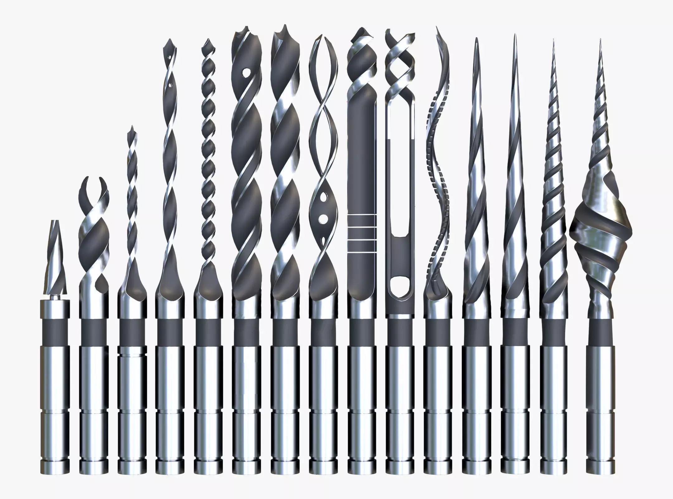 The 3D model 'Drill Bit Set Industrial 15 Types' is an unbranded design made for professional projects.