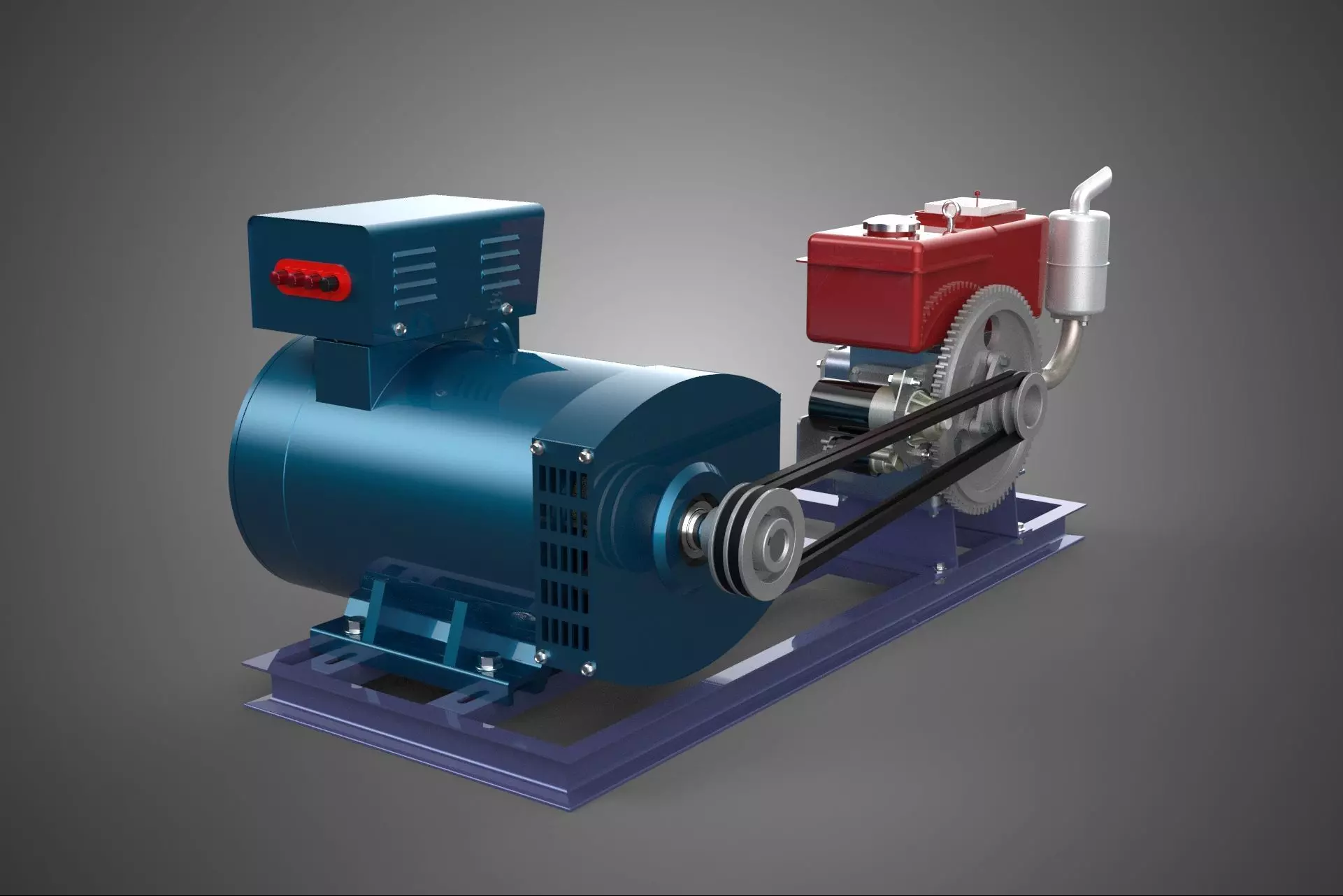The engine and alternator are mounted onto a common skid or base frame, often with vibration isolators to minimize mechanical stress and noise transmission. Critical ancillary systems supporting the operation include: