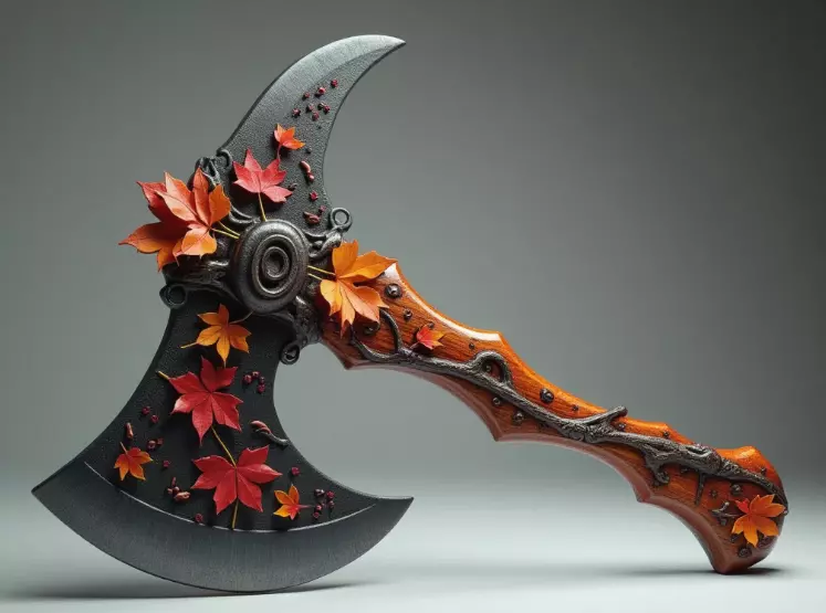 Fantasy Autumn-Themed Battle Axe 3D model