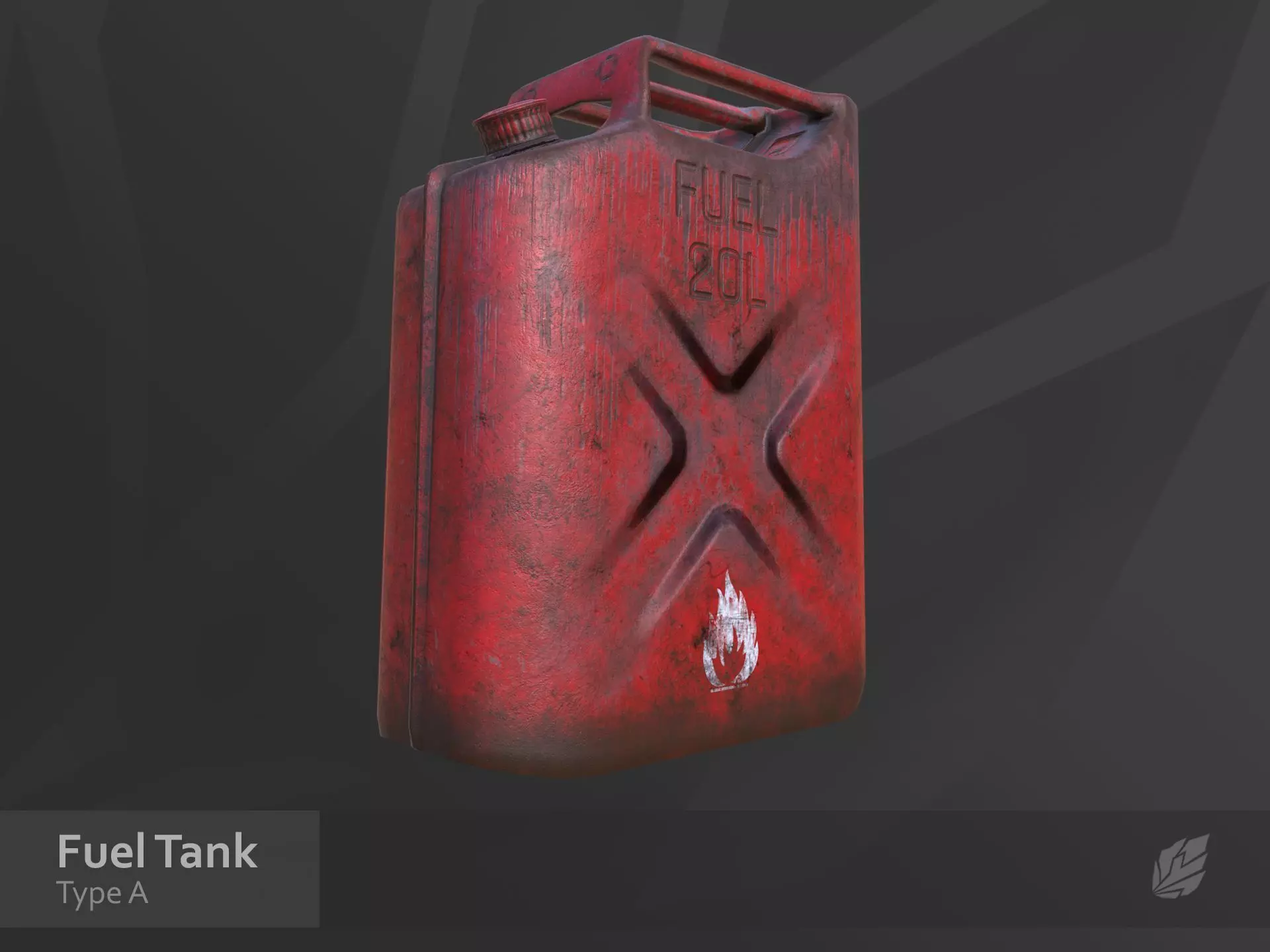 Red 20L-capacity fuel tank (Type A of the collection) low-poly 3d model ready for Virtual Reality (VR), Augmented Reality (AR), games and other real-time apps.