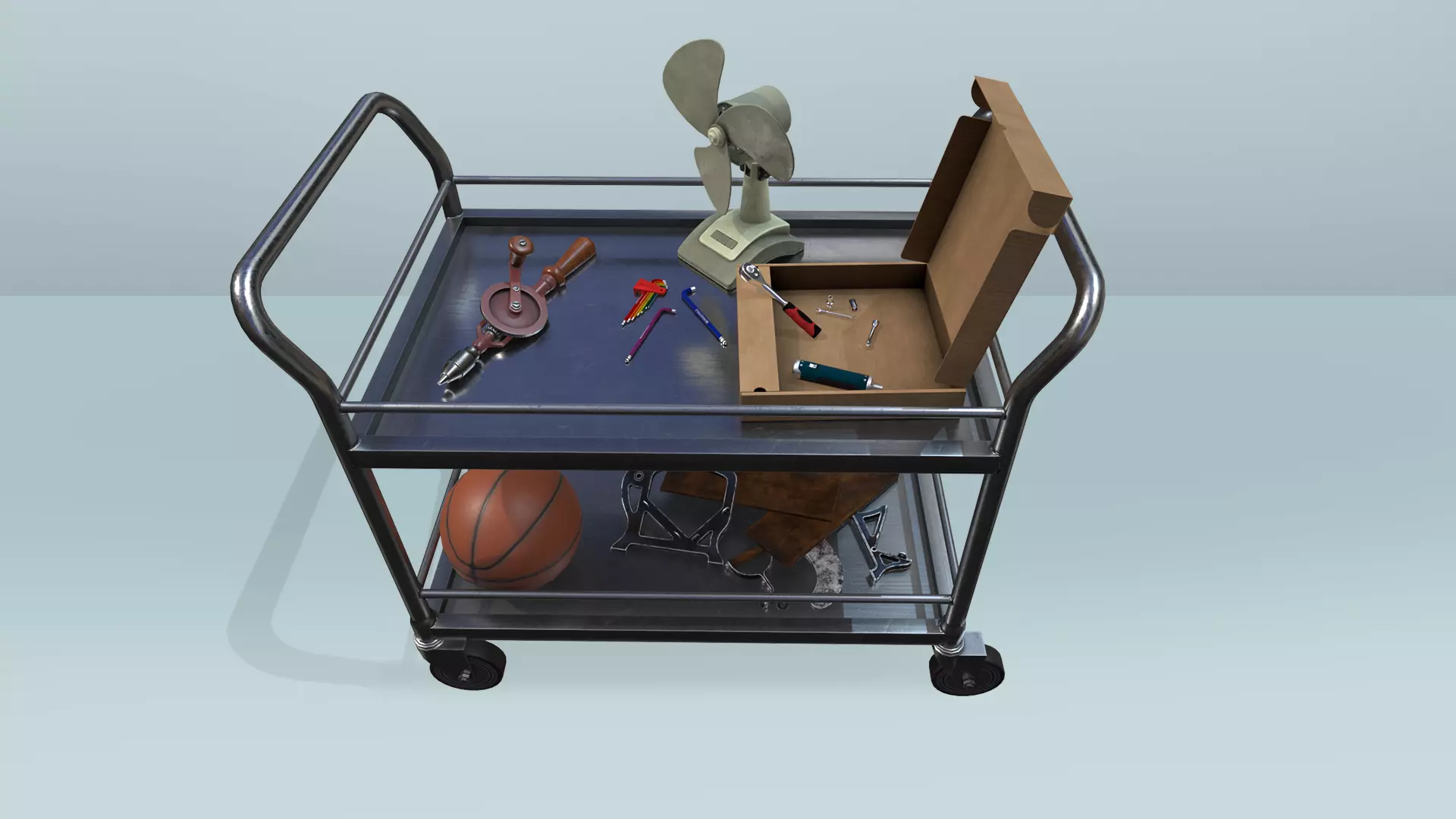 ◉ Basketball◉ Basketball Hoop◉ Bread Slicer+3 Skin: Clean, Polished, Rusty.◉ Button◉ Cold One◉ Dart Board◉ Darts◉ Dig Old Bricks◉ Epoxy Glue◉ Hand Drill◉ Hunter Tablet◉ OfficeTrolley◉ Ratchet Wrench◉ Scoreboard◉ Screwdriver:Phillips.Hex Tool.Slotted.Torx.◉ Sockets:Socket 6mm.Socket 8mm.Socket 10mm.Socket 12mm.Socket 14mm.Socket 16mm.Socket Adapter.◉ Swiss Tools◉ Table Fan+3 Skin: Clean, Polished, Rusty.◉ Wall Plate◉ WhiteBoard◉ Wrench 5x5◉ Wrench Ratchet 7 Head◉ Wrench Ratchet 13 Head◉ Wrench Ratchet Joint Head