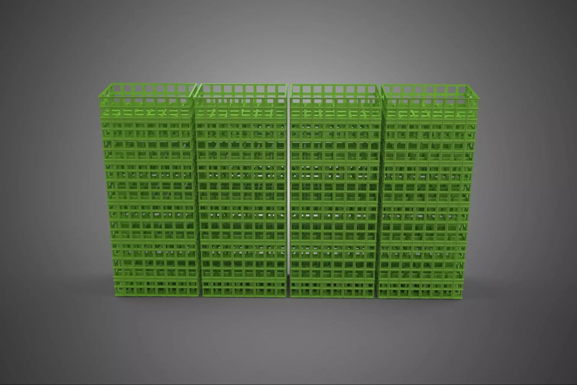The object described, a Green Stack Stacked Plastic Crate Box Container Basket Storage, is a specific manifestation of Reusable Transit Packaging (RTP) or a Plastic Modular Container (PMC). This industrial or commercial receptacle is engineered primarily for the conveyance, organization, and stable vertical storage of goods within supply chain logistics, manufacturing, retail distribution, and agricultural sectors.